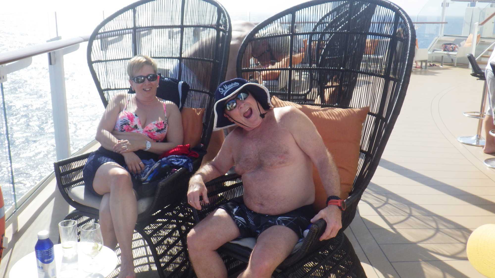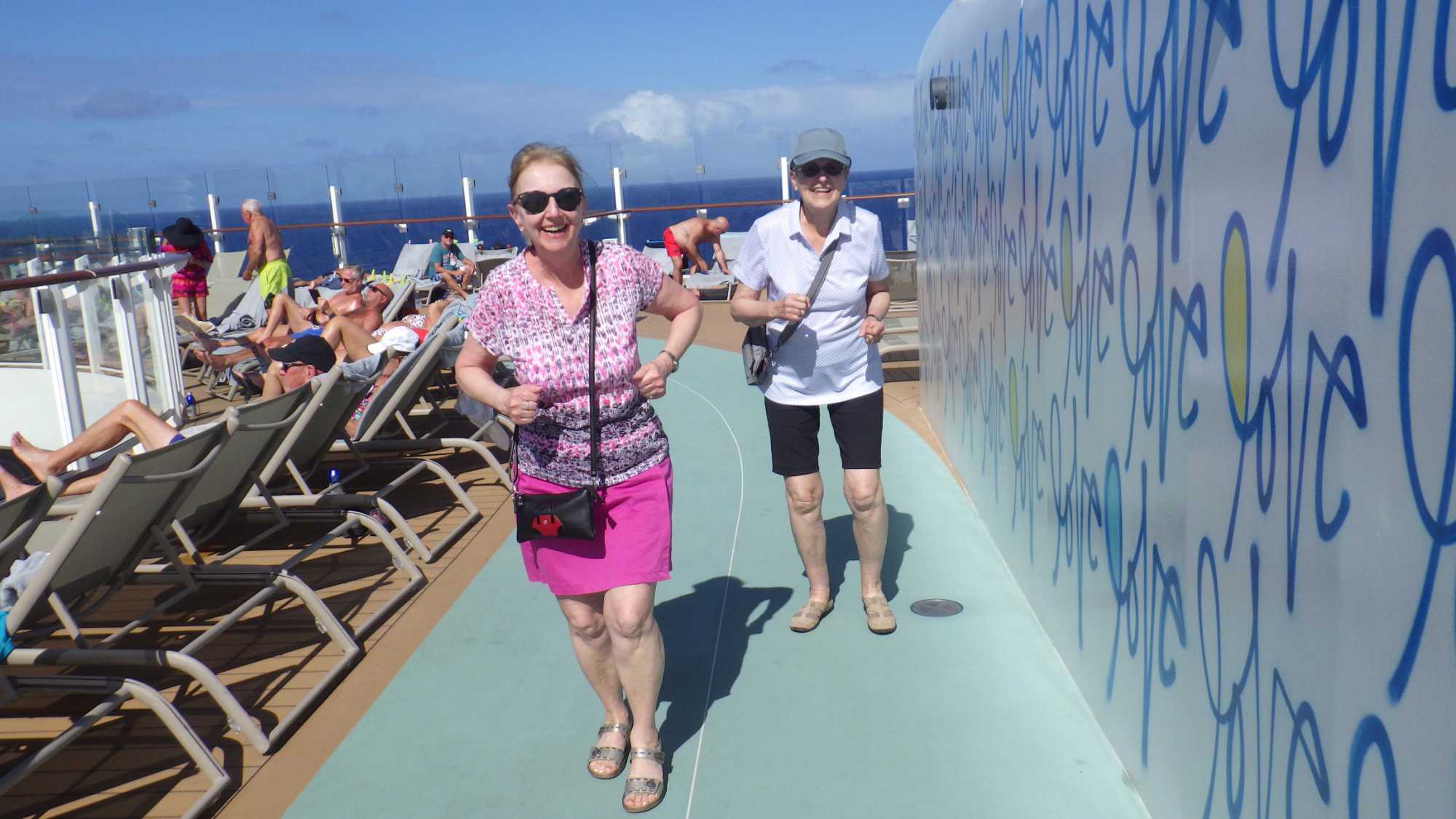 Parmi les choses très populaires à faire dans mon groupe, ce furent les bains de soleil à l’extérieur sur les ponts 14, 15 et 16 qui ont remporté la palme! J’ai des voyageurs qui adorent ça! D'autres ont choisi le casino, les boutiques, le tennis de table, les jeux de cartes ou de prendre un drink (eh oui, comme disent les gens, il est sûrement 17 heures quelque part dans le monde !), Il y a aussi des gens qui ont fait du jogging (deux dames faisaient de la course cet après-midi), du "deal or no deal", du Sodoku, de la lecture et aussi de la relaxation.