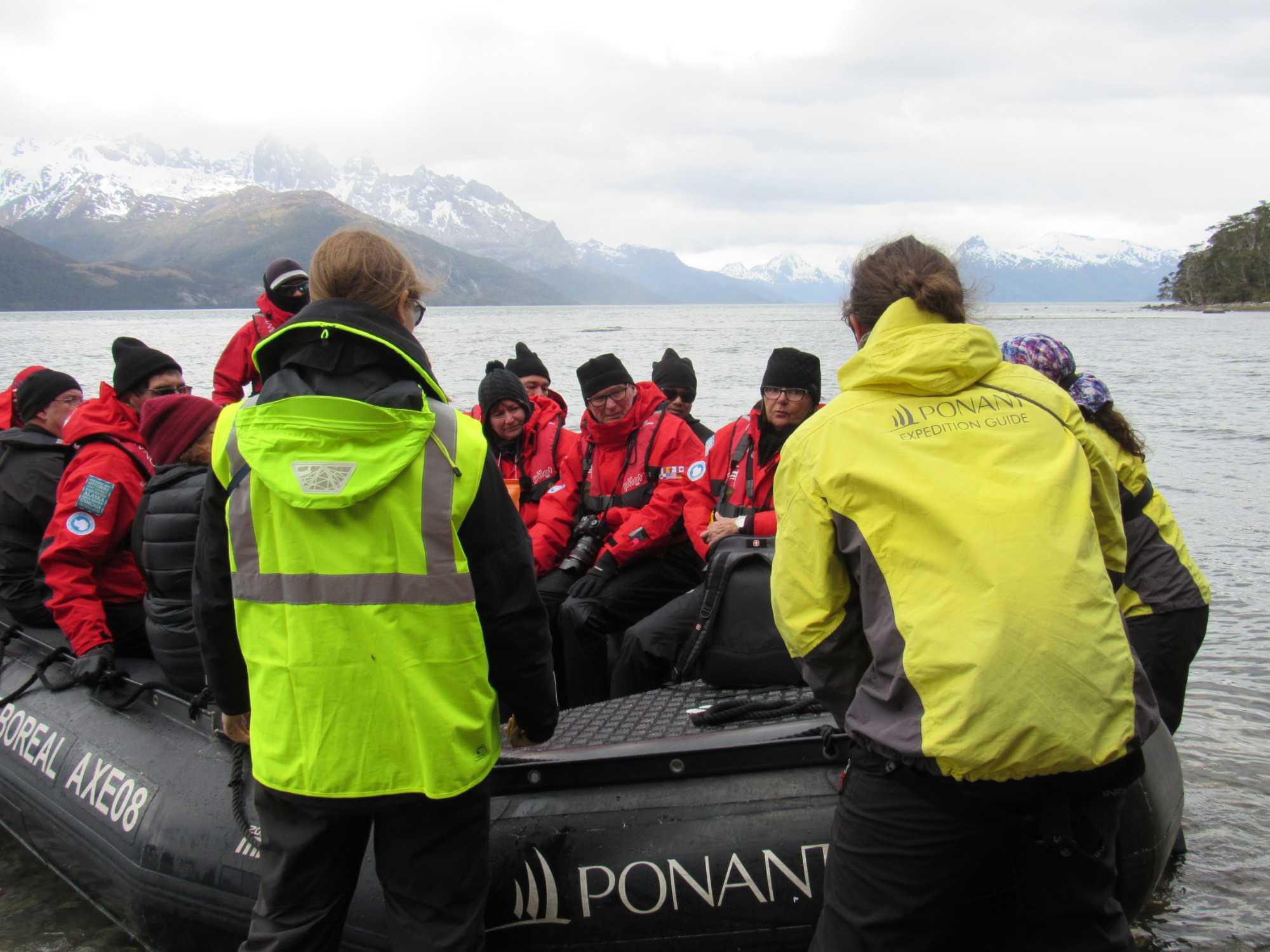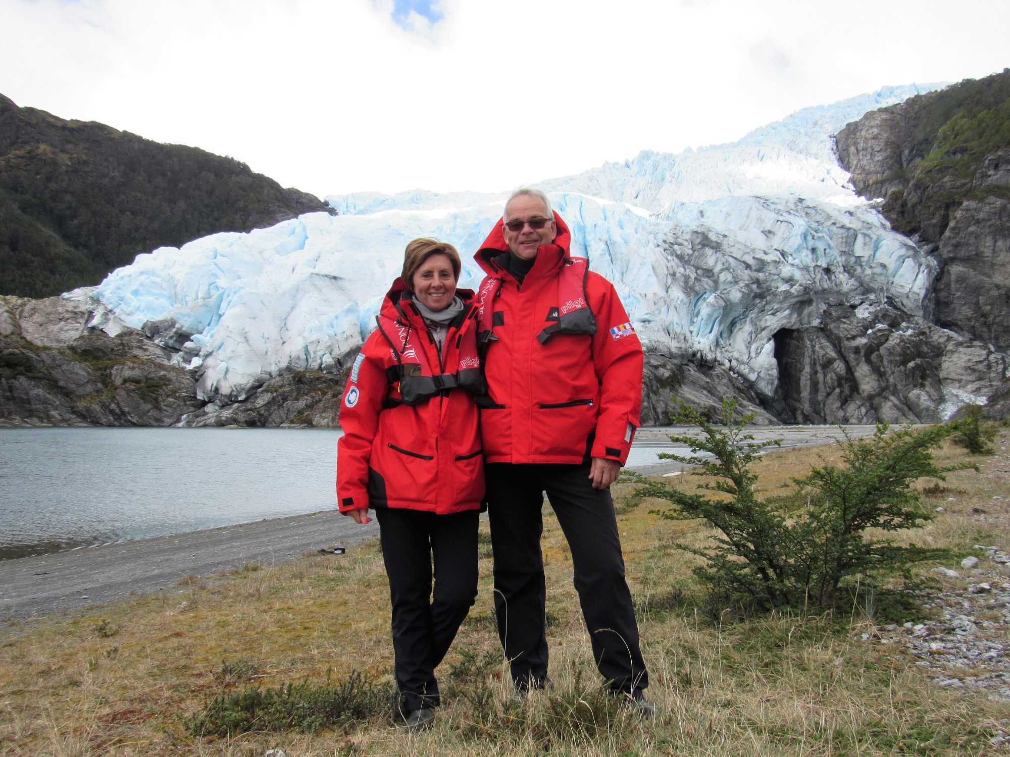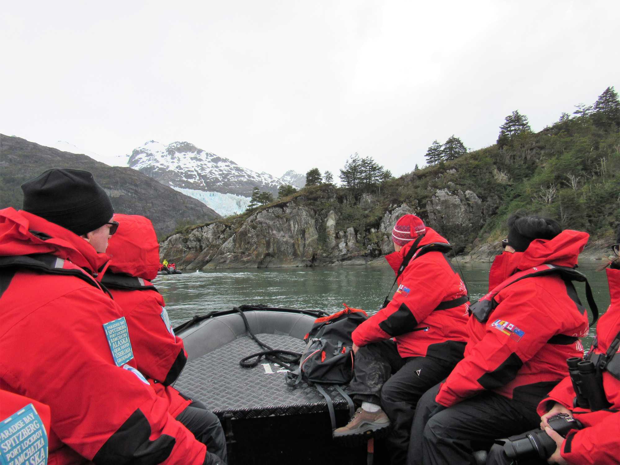 Nous sommes débarqués sur le continent et nous avons la chance de marcher environ 1 kilomètre pour se rendre au pied du glacier. Une très belle marche et surtout une superbe végétation. Nous avons pris plus de 2 heures pour faire l’excursion avant de revenir au navire. Le temps du repas du midi pris sur la terrasse du 6e pont et déjà venu le temps de se préparer pour une deuxième sortie en zodiac. Nous sommes toujours très heureux de sortir et de profiter du grand air pour aller découvrir des sites tous plus exceptionnels les uns des autres. Nous partons donc en balade d’une heure pour cette fois ci, aller vers le glacier Agostini, oui le même nom que le Fjord. Un autre très beau glacier et surtout une autre belle balade de zodiac.