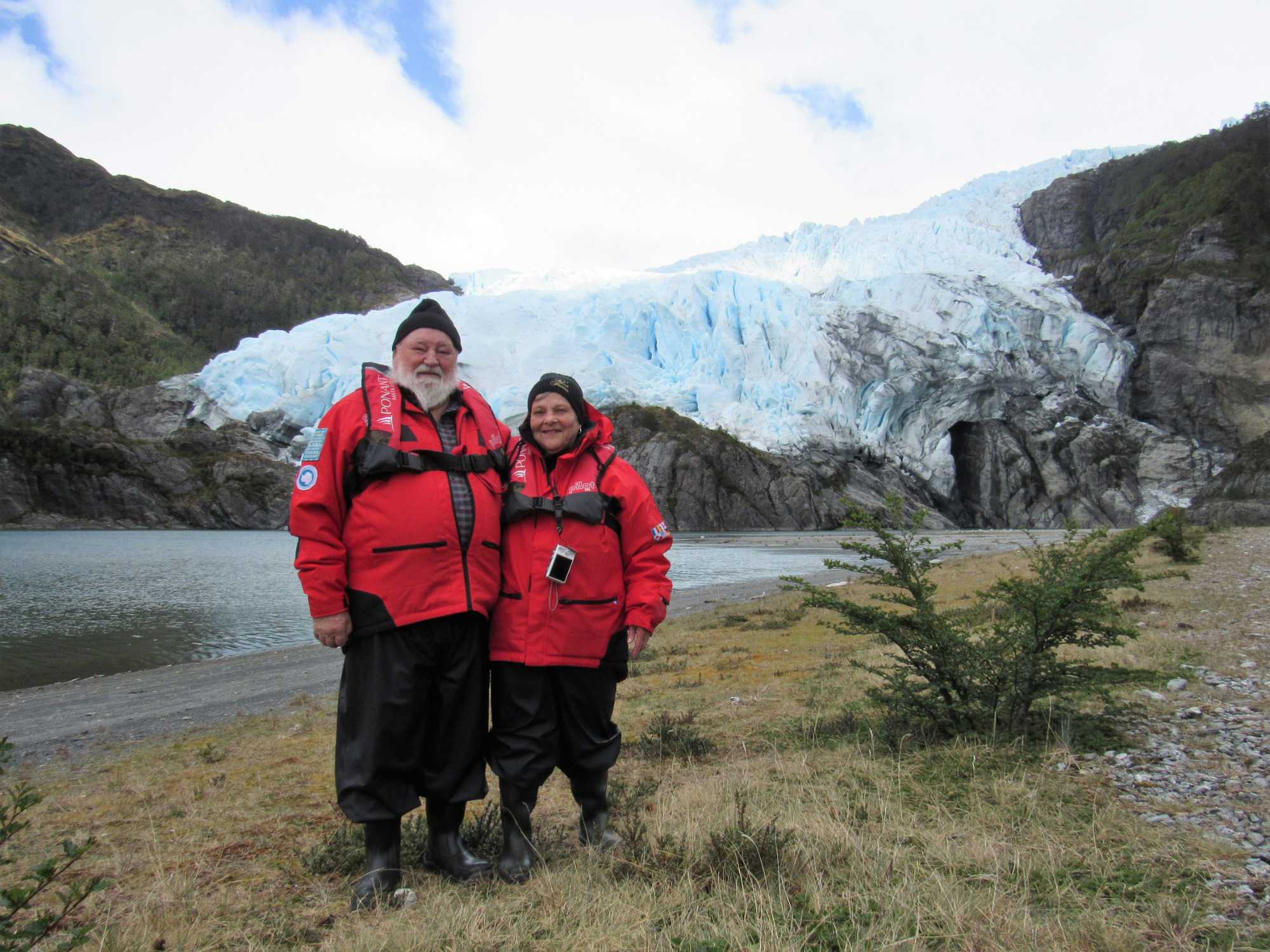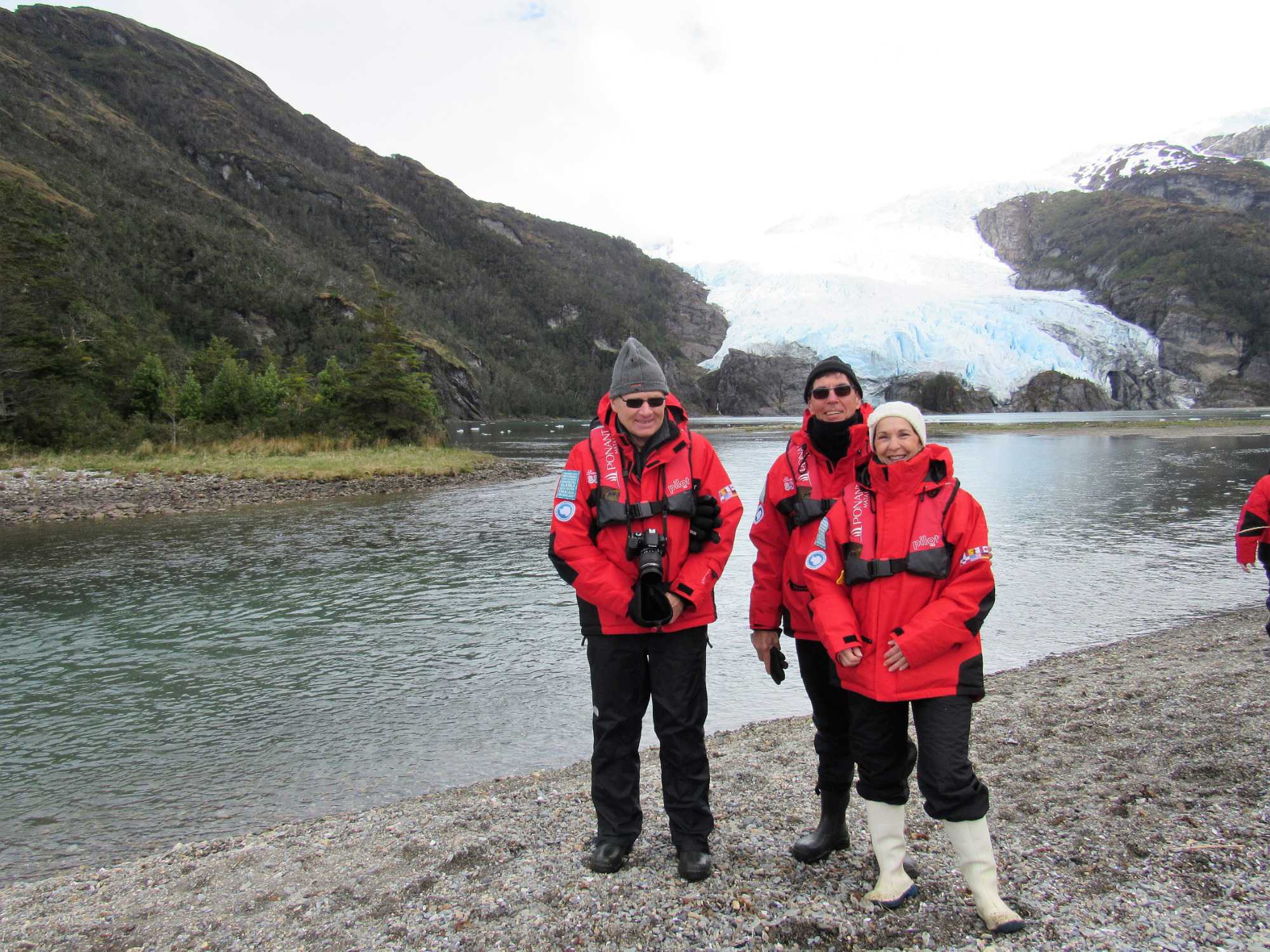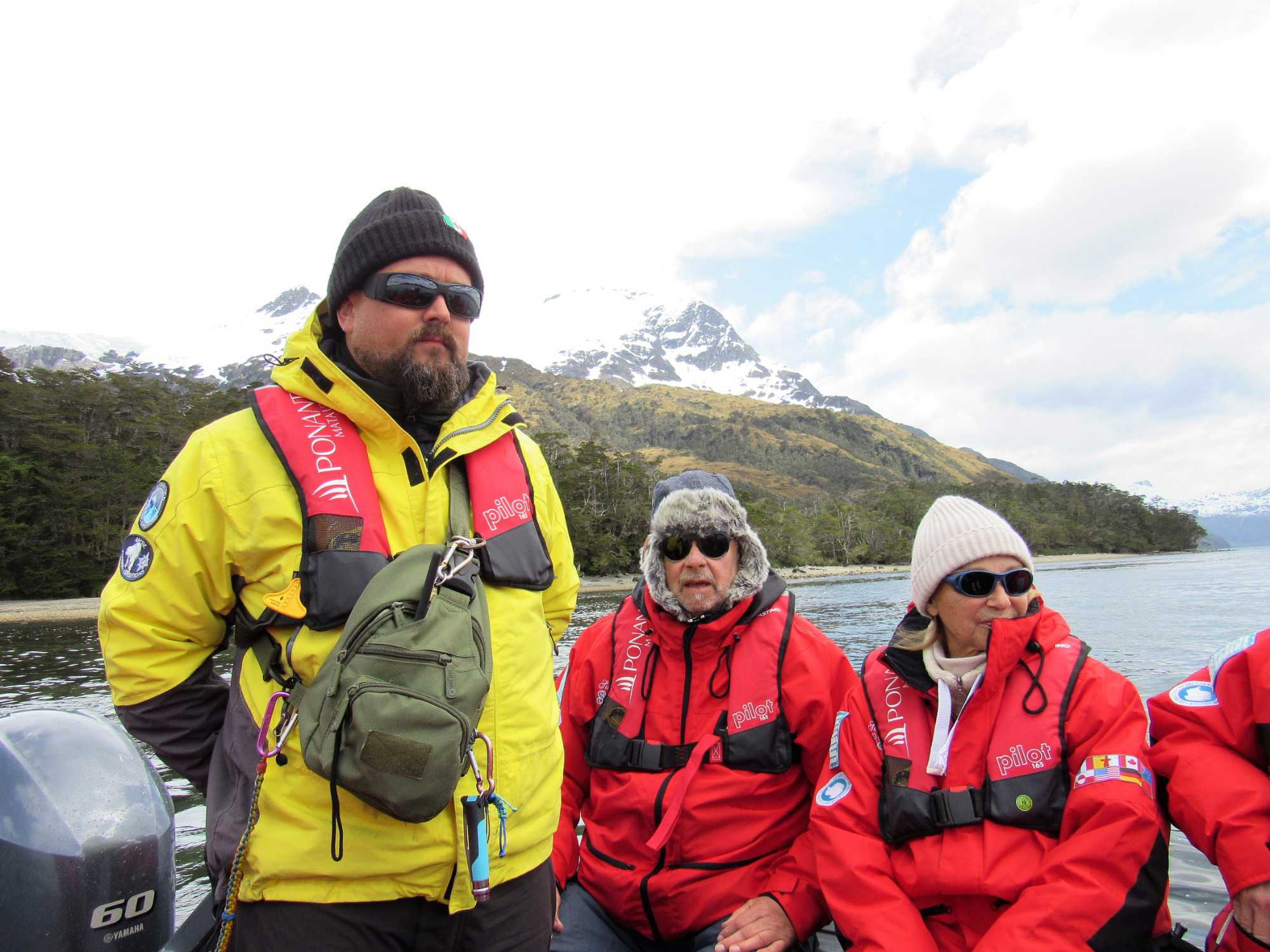 Nous sommes débarqués sur le continent et nous avons la chance de marcher environ 1 kilomètre pour se rendre au pied du glacier. Une très belle marche et surtout une superbe végétation. Nous avons pris plus de 2 heures pour faire l’excursion avant de revenir au navire. Le temps du repas du midi pris sur la terrasse du 6e pont et déjà venu le temps de se préparer pour une deuxième sortie en zodiac. Nous sommes toujours très heureux de sortir et de profiter du grand air pour aller découvrir des sites tous plus exceptionnels les uns des autres. Nous partons donc en balade d’une heure pour cette fois ci, aller vers le glacier Agostini, oui le même nom que le Fjord. Un autre très beau glacier et surtout une autre belle balade de zodiac.