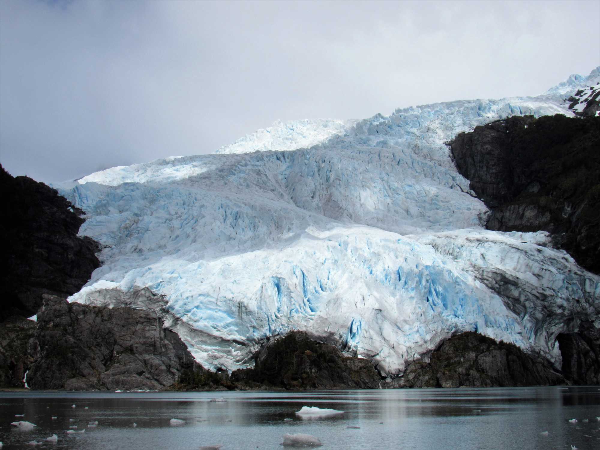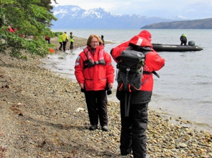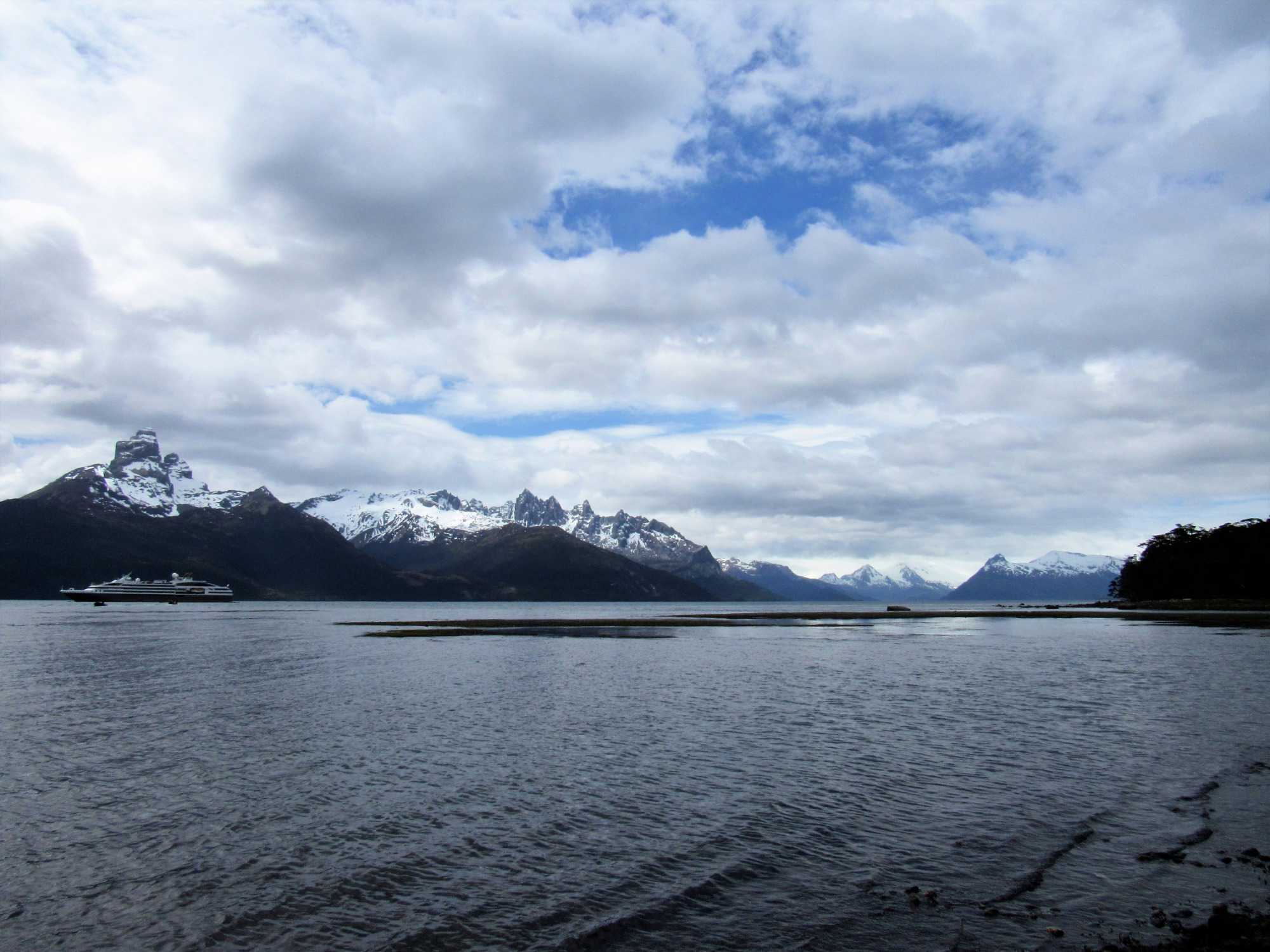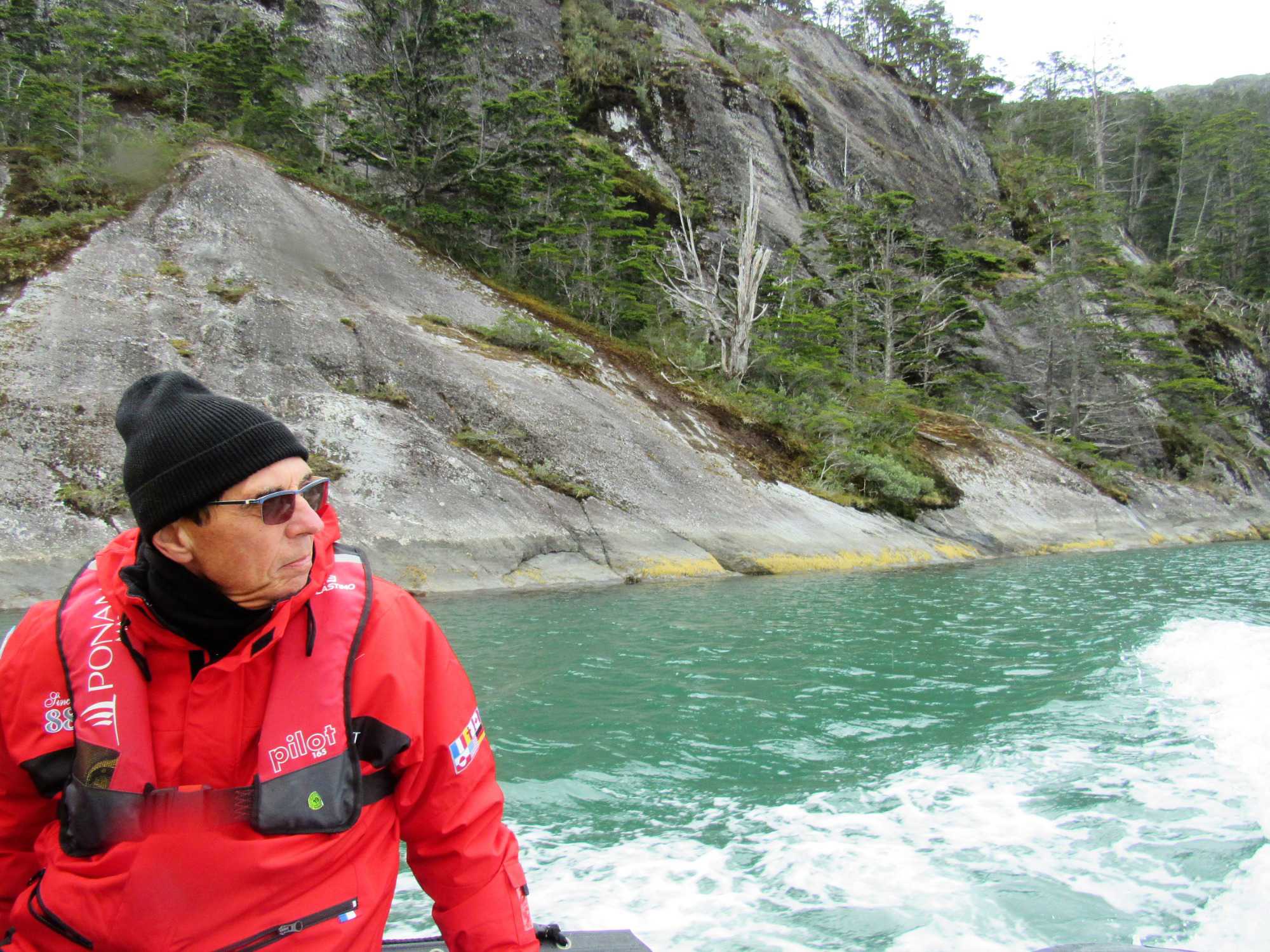 Ce matin, notre première sortie était prévue en après-midi mais a été devancée étant donné les conditions de navigation d’hier soir furent propices. Ainsi, le navire a gagné du temps. Nous naviguons entre les pics parmi les plus impressionnants des Andes chiliennes. Durant la nuit nous sommes entrés dans le détroit Magdalena. Nous nous sommes approchés du Glacier Aguila, spectaculaire par ses crevasses qui viennent se poser sur la roche de bord de mer. Il se découvre en zodiac, et par un sentier aménagé sur le flanc de la montagne.