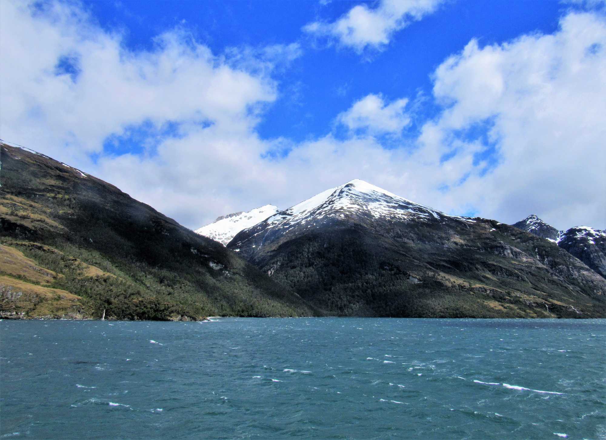 Nous débutons notre journée par une splendide navigation encore une fois sous le soleil, avec quelques nuages qui nous rejoignent de temps en temps mais quelle chance nous avons. On se le dit constamment car il est bien rare d’accumuler autant de belles journées en Patagonie. Il faut avouer que chaque voyage en Patagonie est une surprise. À la même période, d’une année à l’autre, tout est possible et en particulier sur le plan climatique on ne peut se fier à ce que nous avons déjà eu comme température.