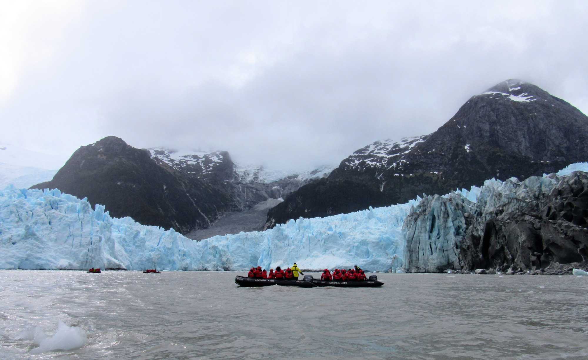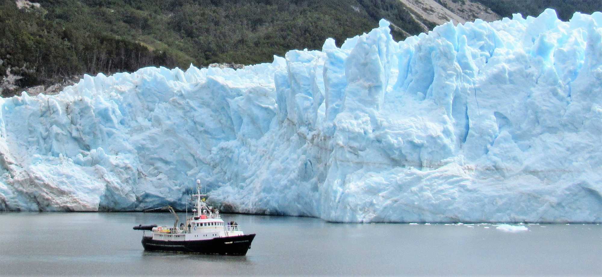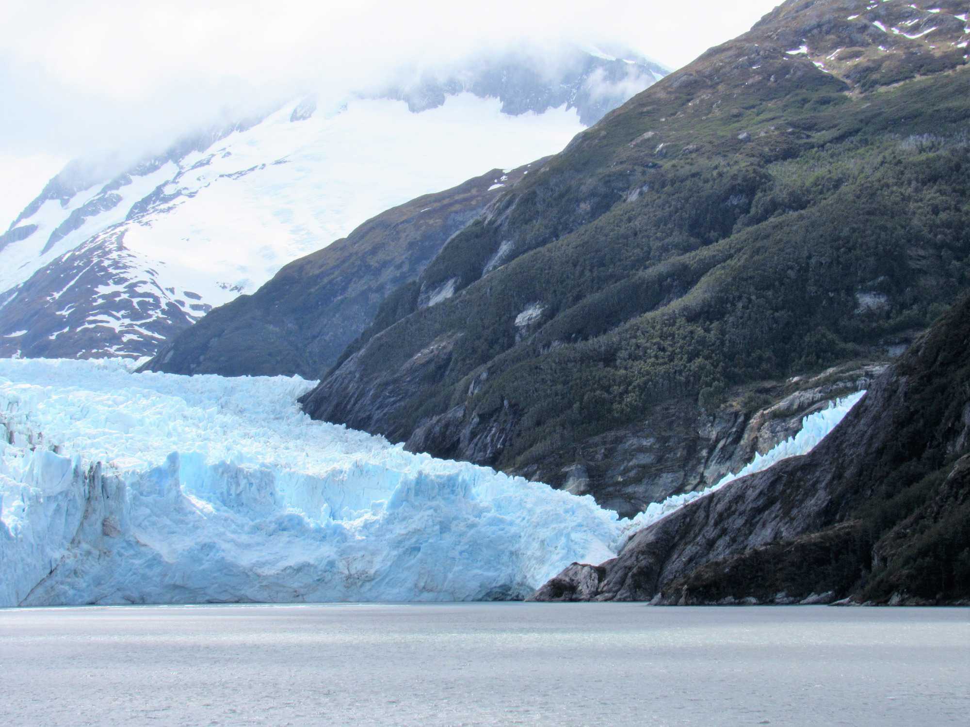 Le navire s’engouffre dans l’étroit fjord Garibaldi, bordé de forêts verticales, agrippées aux falaises abruptes dont les sommets baignent encore dans cette neige éternelle qui résiste aux températures plus clémentes de l’été. Tout d’abord, revenons au Glacier Garibaldi, qui compte parmi les plus étonnants glaciers d'Amérique du Sud. Lorsque nous entrons dans le fjord Garibaldi, où deux glaciers s’élèvent avec comme toile de fond une chaine de montagne magnifique, la cordillère Darwin qui est le prolongement de la cordillère des Andes, colonne vertébrale de toute l’Amérique du Sud, on ne peut qu’être émerveillés! C’est vraiment un très beau glacier à voir.