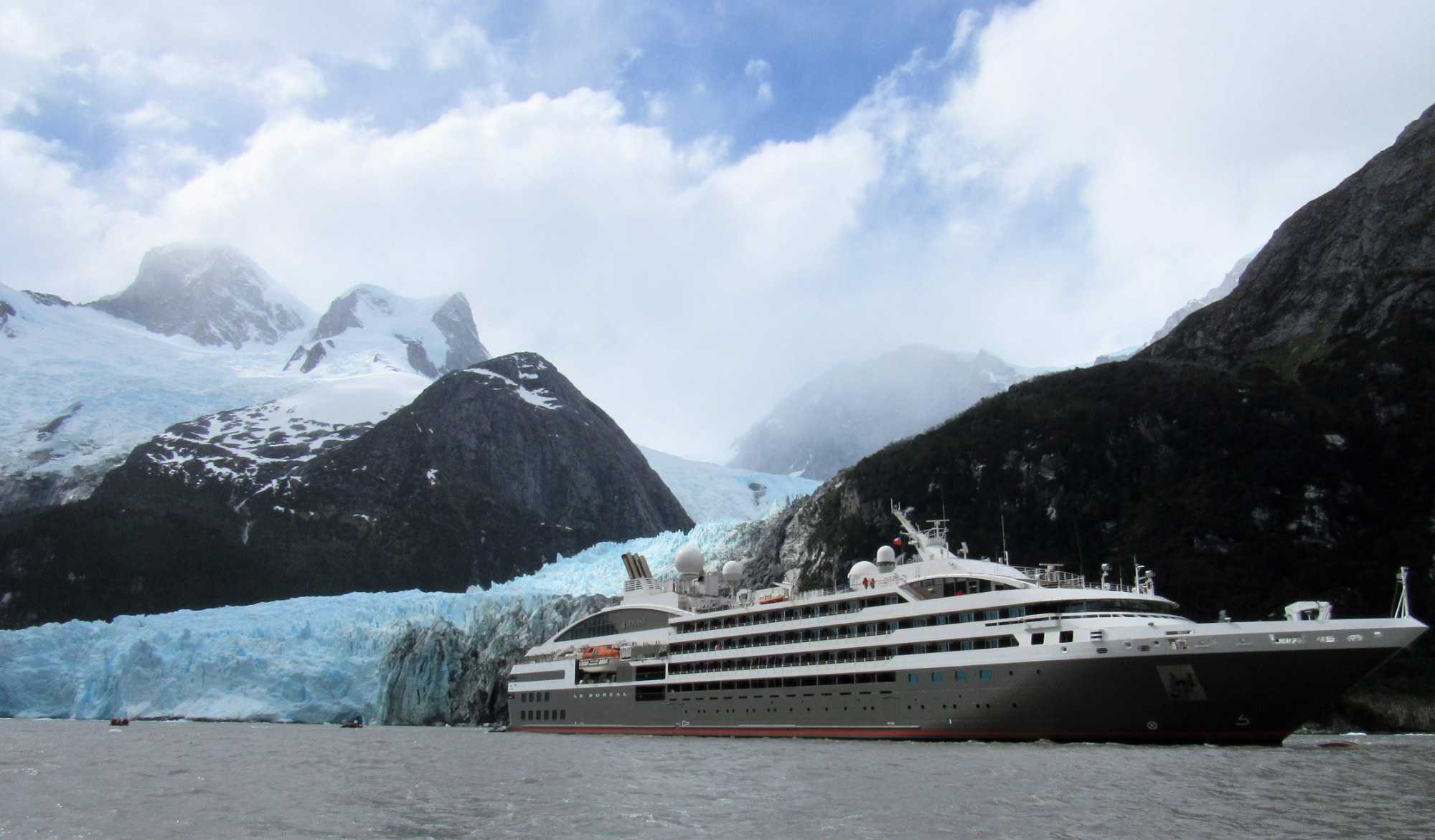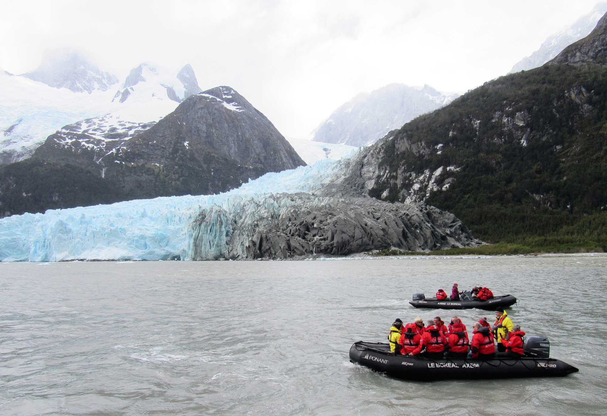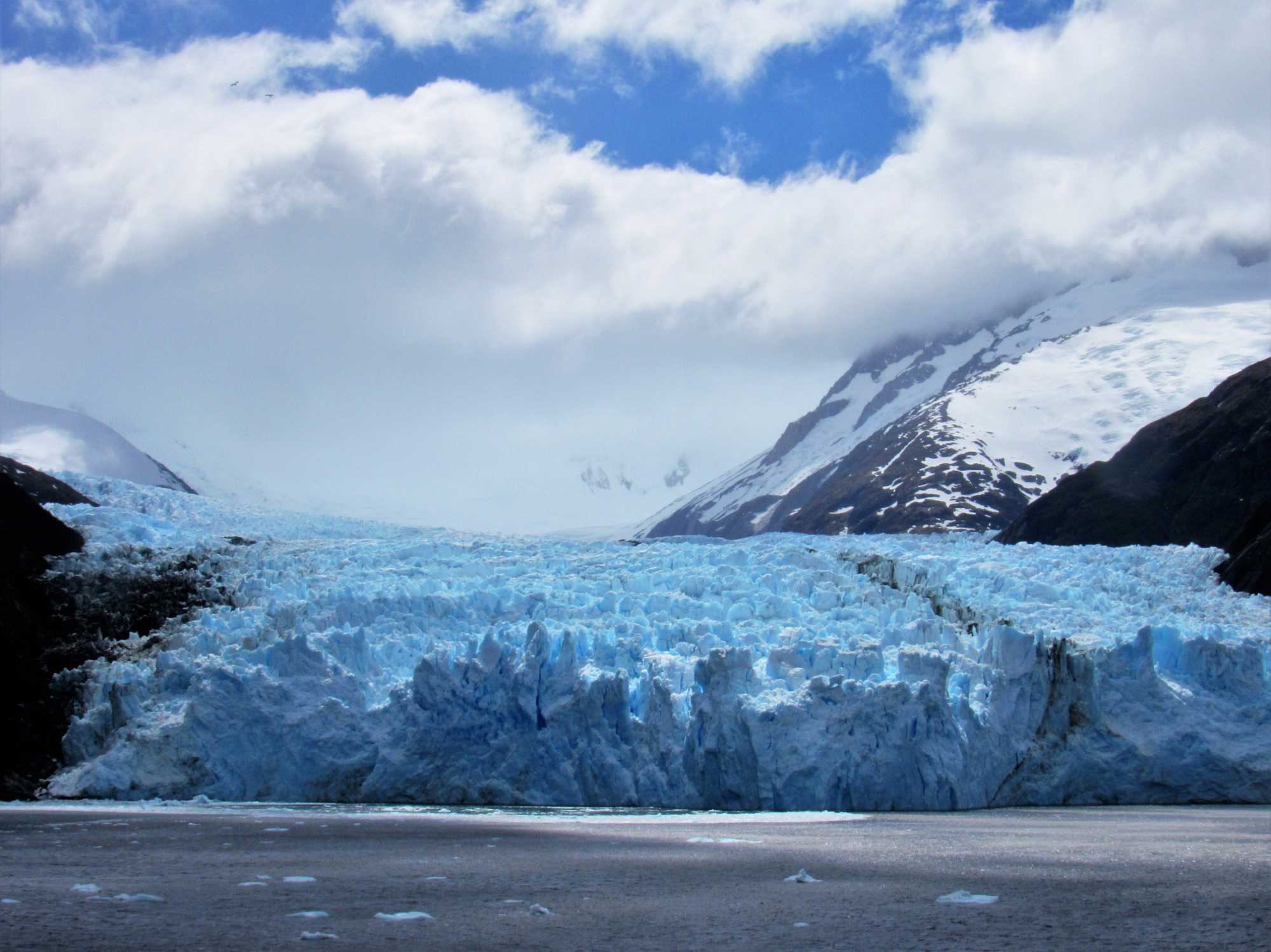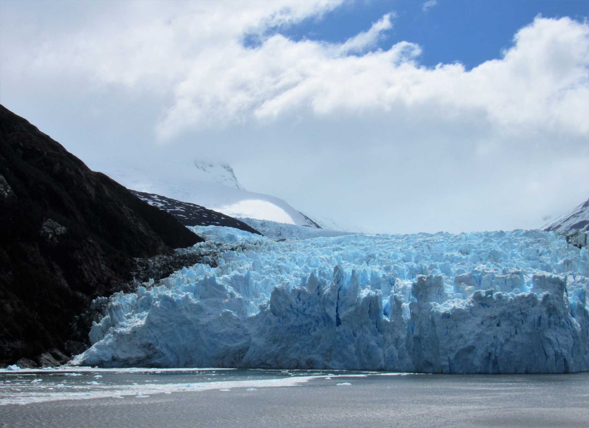 Le navire s’engouffre dans l’étroit fjord Garibaldi, bordé de forêts verticales, agrippées aux falaises abruptes dont les sommets baignent encore dans cette neige éternelle qui résiste aux températures plus clémentes de l’été. Tout d’abord, revenons au Glacier Garibaldi, qui compte parmi les plus étonnants glaciers d'Amérique du Sud. Lorsque nous entrons dans le fjord Garibaldi, où deux glaciers s’élèvent avec comme toile de fond une chaine de montagne magnifique, la cordillère Darwin qui est le prolongement de la cordillère des Andes, colonne vertébrale de toute l’Amérique du Sud, on ne peut qu’être émerveillés! C’est vraiment un très beau glacier à voir.
