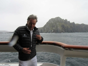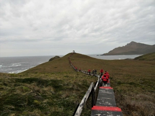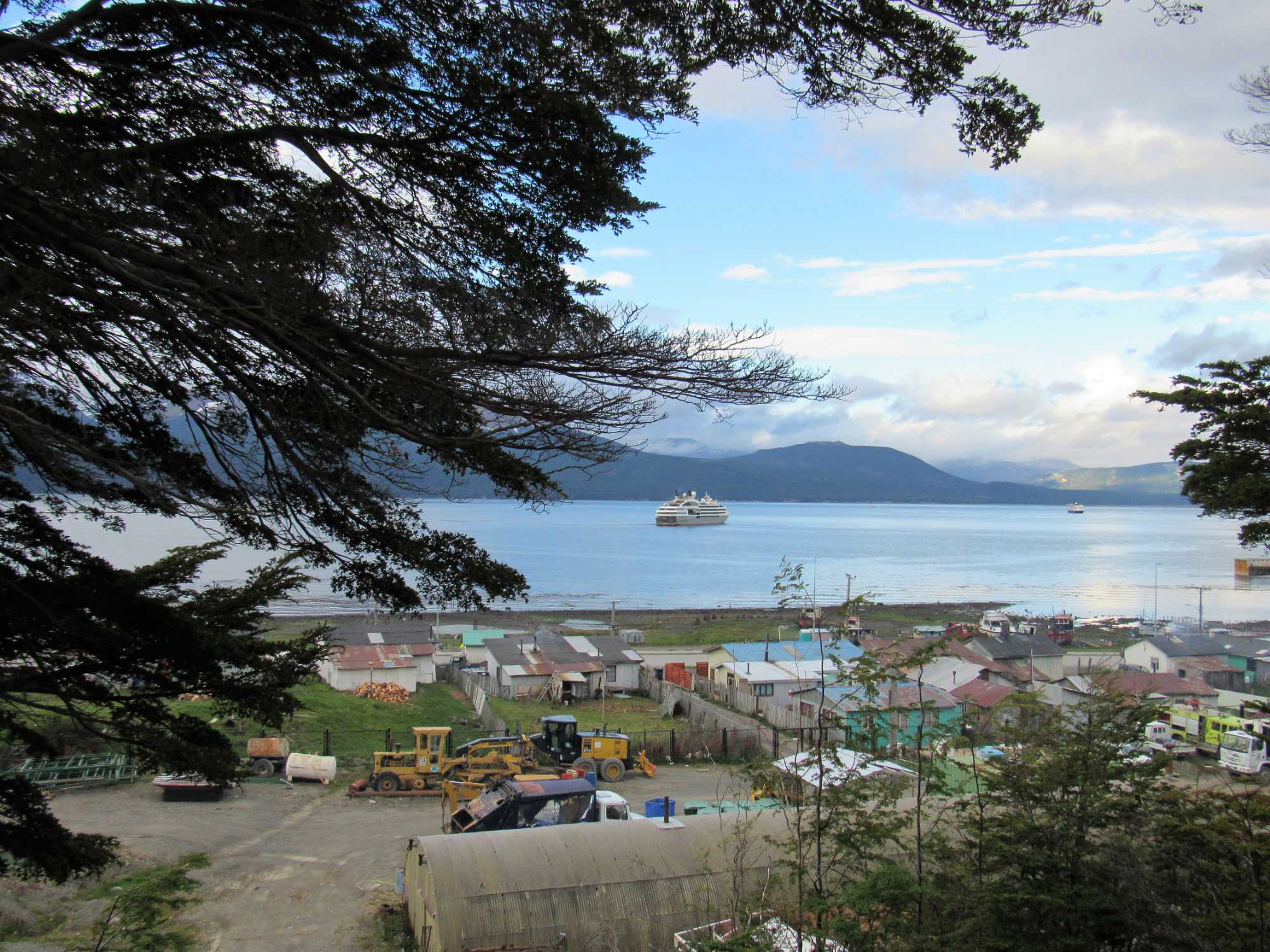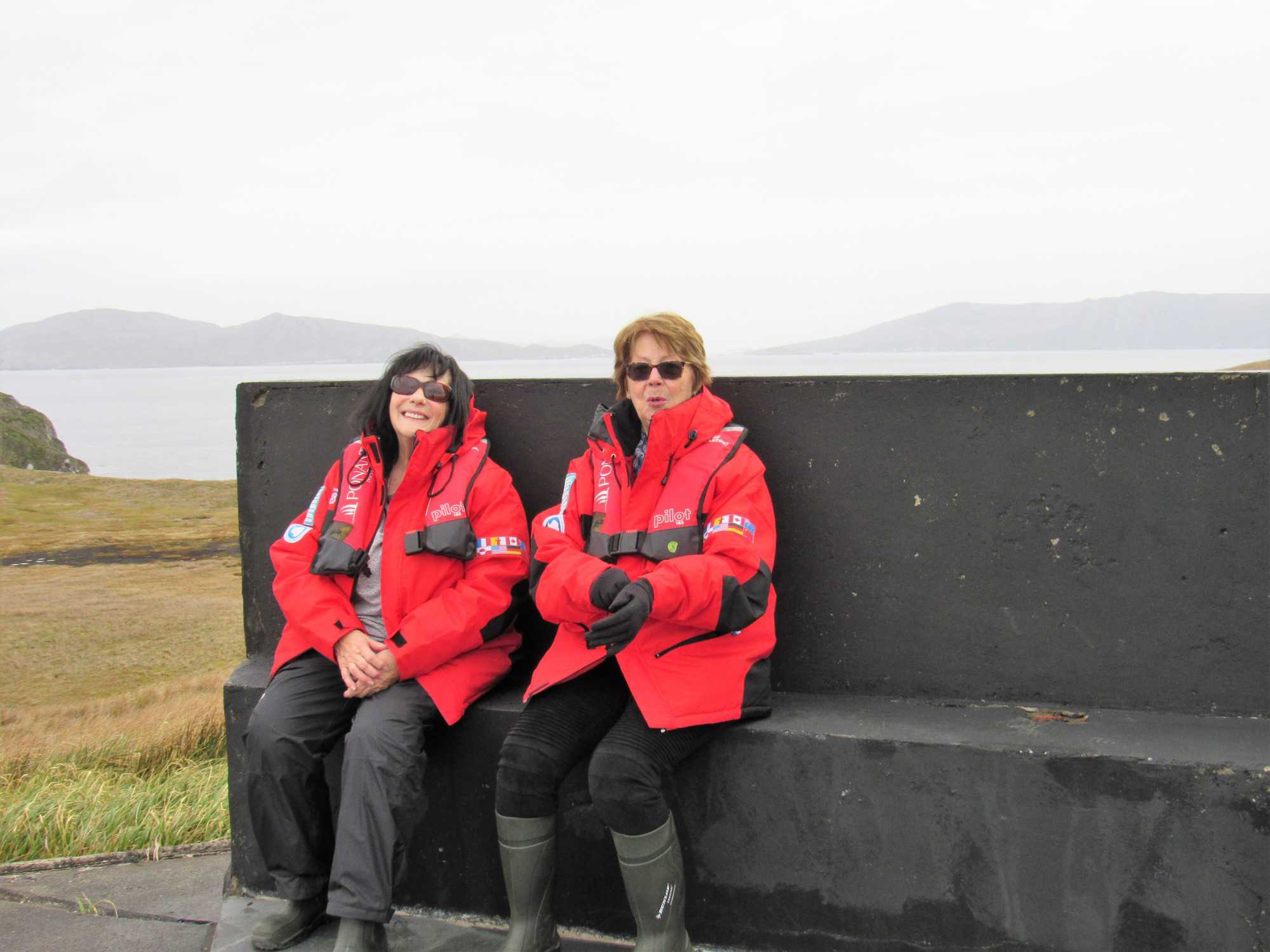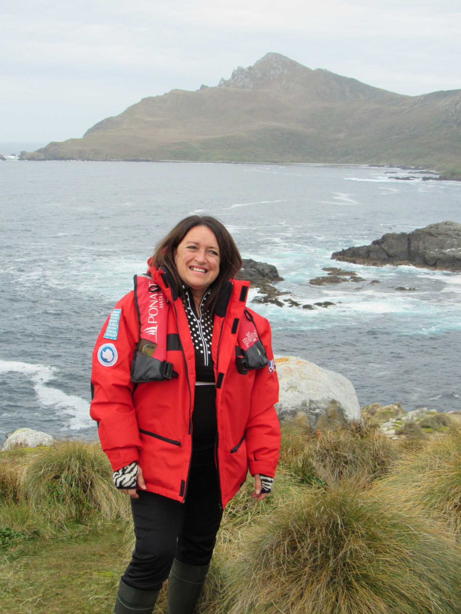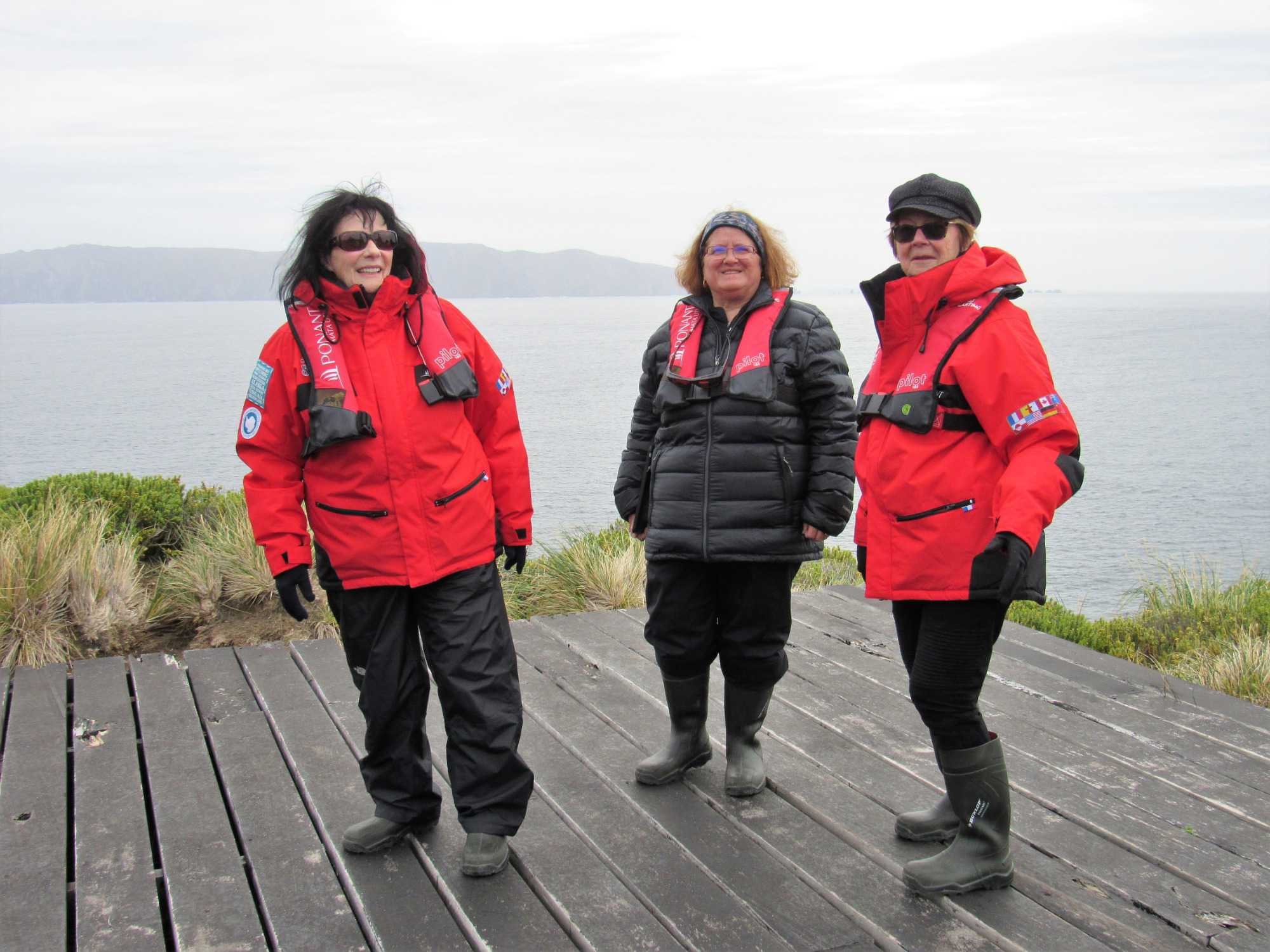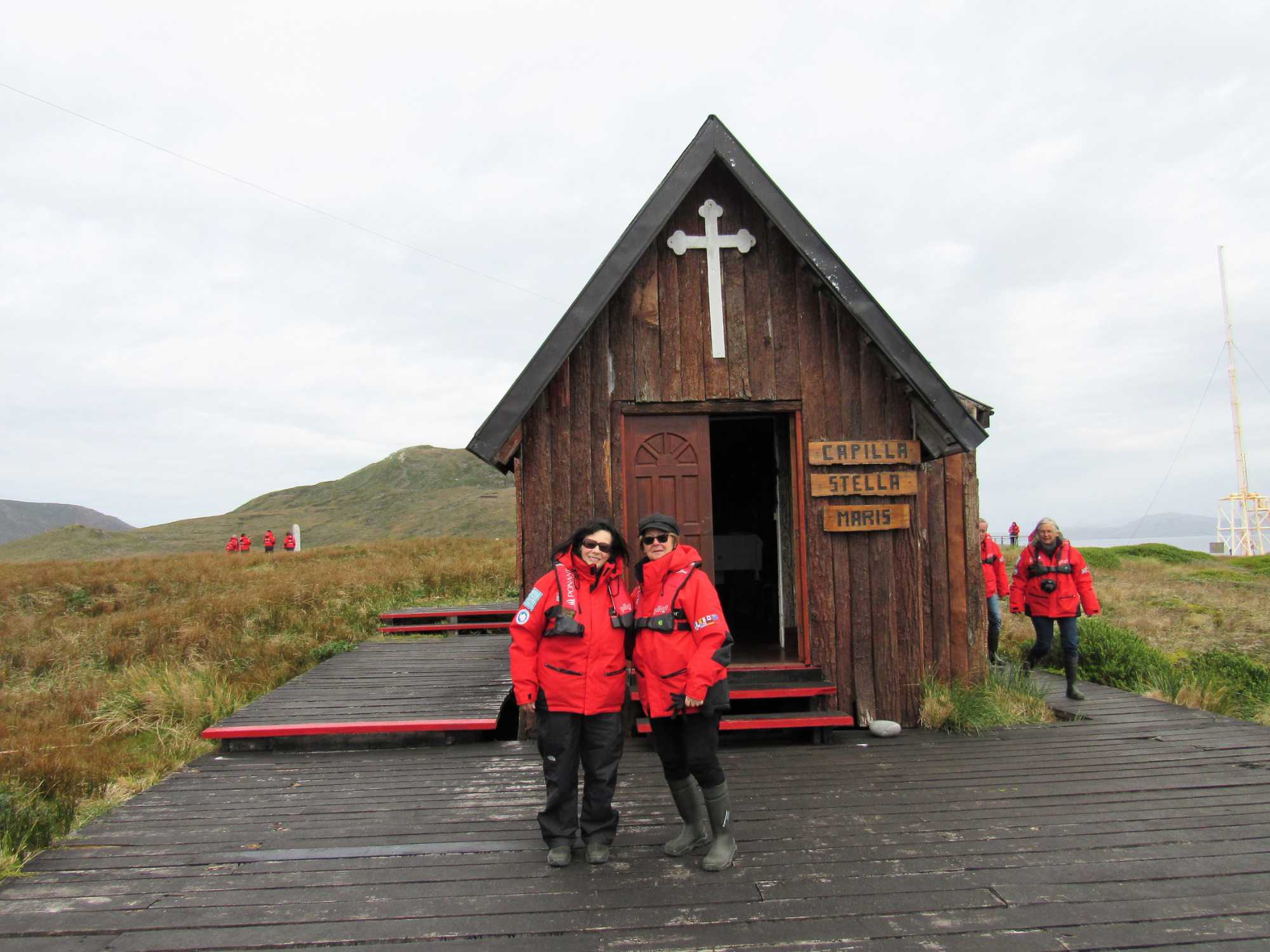 Comme nous sommes chanceux ce matin et heureux de pouvoir vivre ce débarquement dans un endroit si exceptionnel pour son histoire. Nous nous habillons donc très bien car il fait tout de même un peu frais avec 5 degrés mais c’est confortable en l’absence de vent. Nous nous approchons du Cap Horn et toute l’équipe des excursions nous attend pour notre débarquement à terre. À l’arrivée du zodiac sur la rive, ils attendent patiemment la bonne vague pour nous faire descendre sans nous mouiller. Nous devons par la suite gravir plusieurs marches avant d’arriver au sommet, puis, nous marchons vers le monument en forme d’albatros situé sur la pointe avec la vue sur les deux océans. Une toute petite chapelle et un phare sont les deux bâtiments de l’île que nous visitons. Les habitants sont une petite famille (papa, maman et 3 enfants) arrivée depuis seulement 5 jours et nous sommes leur premier navire qui les visite. Le papa travaille pour l’armée chilienne et a postulé pour ce travail. Ils sont charmants et notre navire est allé faire estamper tous nos passeports sur l’île. Quelle gentillesse de la part de Ponant. L’île est particulière avec une végétation différente. Il faut dire que la pluie, le vent et le froid sont presque toujours présents. Nous avons parcouru plus de 8 km sur le Cap Horn avant de revenir sur le navire. Par la suite le capitaine a fait le tour de l’île de l’est vers l’ouest comme on doit le faire. Ce fût une autre belle navigation commentée par le commandant Garcia.