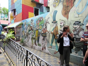 Vous aller voir des couples remonter les marches de reculons car d’après une légende de la ville cela veut dire que vous allez revenir si vous réussissez. Plusieurs veulent revenir donc! J’ai des voyageurs qui se sont prêtés au jeu. Mes photos vous montreront en images les endroits visités. Vous reconnaitrez la Plaza Mayor avec ses beaux bâtiments et sa cathédrale. Le cimetière de Recolleta qui est splendide. Laissez moi vous expliquez quelques photos. La belle dame avec son chien morte dans les alpes suisses très jeune. La porte avec des rubans blancs qui indiquent par ces rubans attachés une demande pour trouver l’amour. Une belle dame qui dit-on aurait été enterré vivante. La dame avec son bébé morte à l’accouchement et bien d’autres histoires. Nous avons aussi vu le monument funéraire de la famille d’Eva Perón (Evita). Venu le temps d’un bon dîner dans un restaurant branché de la ville et en après-midi ce fût une balade à la Boca pour terminer notre visite de la ville. La Boca est toujours un coin amusant et attrayant et surtout très colorés.