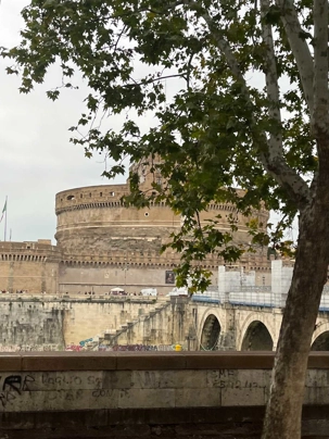 Dès notre départ du terminal, nous nous dirigeons vers le centre-ville de Rome, qui doit-on le rappeler, a l’âge vénérable de plus de 2700 ans. Les bouchons et les retards font partie de l’ADN de Rome. Fait particulier, 2025 sera une année de Jubilée, c'est-à-dire que la porte Sainte ouvrira dès la nouvelle année. Alors Rome se refait une beauté pour l’arrivée de ces milliers de pèlerins durant la prochaine année sainte. Nous comprenons rapidement qu’une pléiade de monuments, fontaines, obélisques sont en restauration ou nettoyage et plusieurs sont cachés par les échafaudages. Nous avons une visite guidée de certains des sites les plus fameux comme les monuments du Rome Baroque qui comprennent la célèbre fontaine de Trevi (on a beau l’avoir vu en photo ou dans des films, sa vue réelle est fort impressionnante), le Panthéon (un temple romain de 2000 ans admirablement conservé en plein coeur de la Ville), la Place Navone qui est sise sur le lieu d’un ancien cirque romain et qui, avec ses trois fontaines baroques, est certes une des plus belles places du monde. Naturellement, on a pu voir les ruines du Colisée, le Castel Sant’Angelo et tant d’autres !