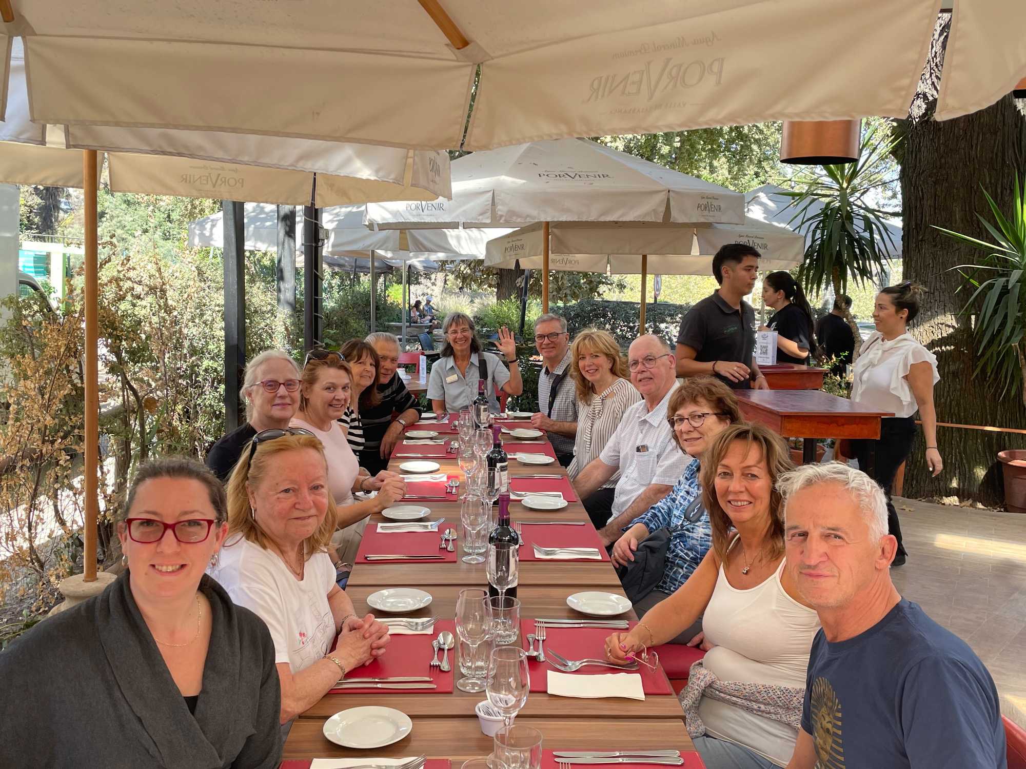 Ce soir au souper nous avons le plaisir de souligner l’anniversaire de Louise Proulx en levant nos verres à sa santé et en dégustant un délicieux repas ! Bonne fête Louise ! Déjà une belle ambiance s’est installée dans le groupe ! L'endroit est magnifique: manger à l'extérieur et être très bien, n'est-ce pas merveilleux!