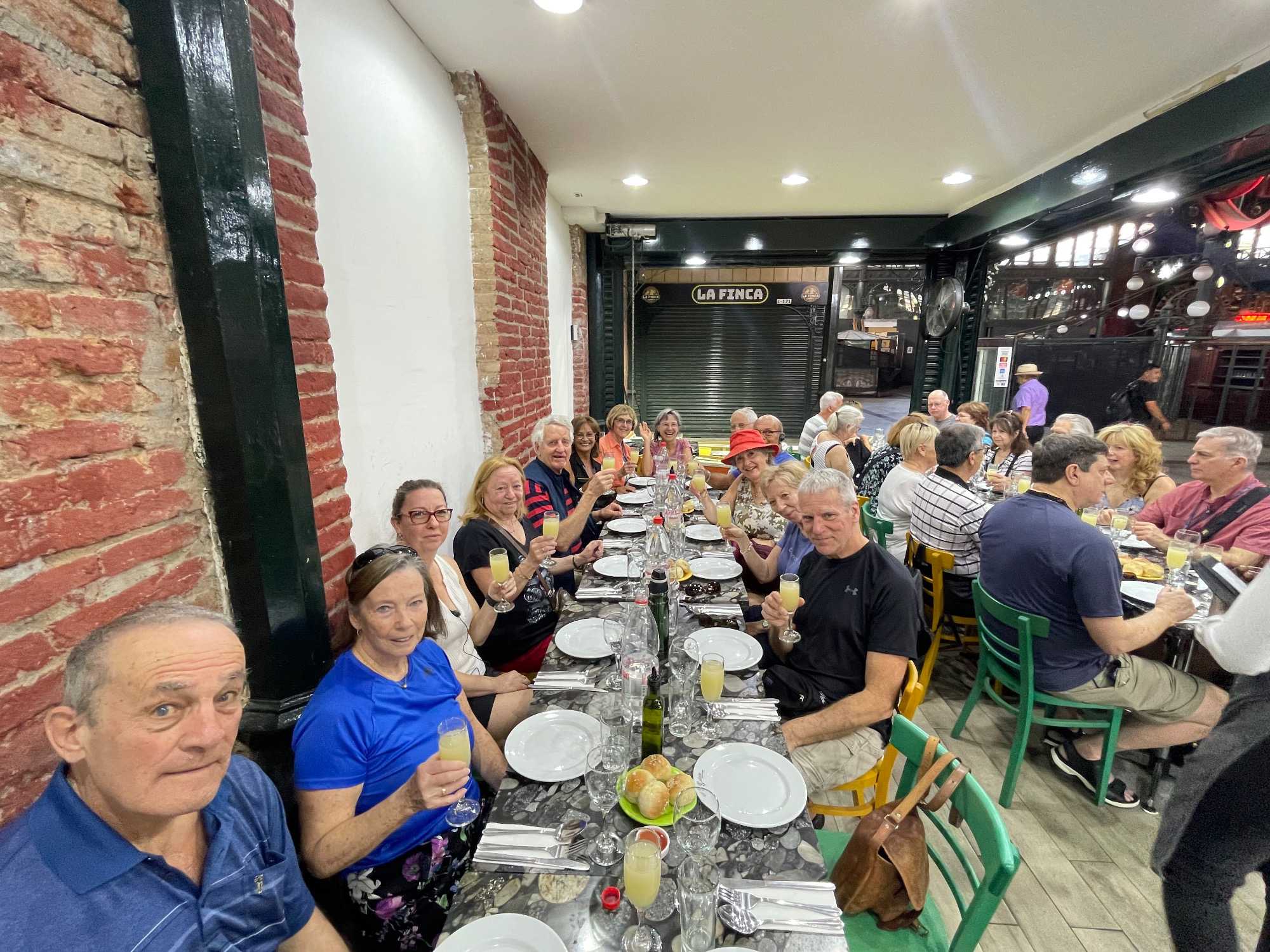 Après toutes ces découvertes et cette belle promenade, nous retournons à l’hôtel prendre une pause. Certains se baignent dans la piscine (assez froide!) de l’hôtel. Il faut dire qu’il a fait chaud aujourd’hui avec près de 30 degrés, avec un temps sec. Et nous reprenons le bus pour souper dans un endroit exceptionnel: le restaurant Mestizo. Wow!!! Quel endroit! Près d’un joli parc, encore une fois en plein air. Le temps est doux, même pas besoin de « petite laine »! Nous mangeons comme des rois! Le souper est délicieux et encore une fois bien arrosé. Le pisco sour est suivi de vins chiliens à volonté. Nous pouvons dire que nous avons BEAUCOUP de plaisirs tous ensemble!!!