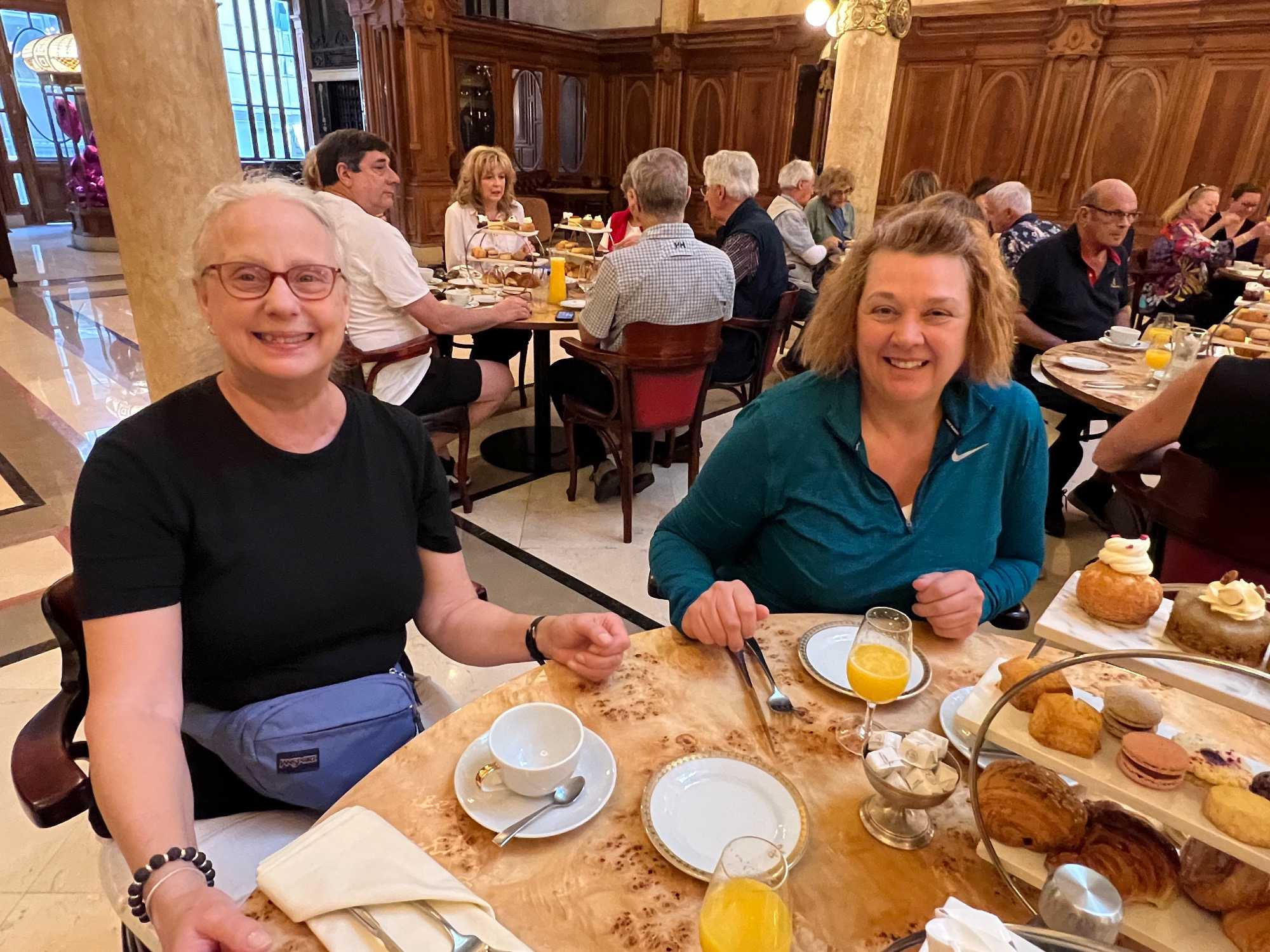 Esteban nous propose une petite promenade en sa compagnie dans le quartier de Madero, où se trouve notre hôtel. On découvre de nouvelles places et de nouveaux décor. Mais en parlant de décor, vous allez voir des photos de l’endroit où on nous a amené « bruncher ». WOW WOW WOW! L’endroit est magnifique et d’un chic incroyable. C’est comme si nous prenions l’ « after tea » à l’anglaise. La table est remplie de petits sandwichs tous les plus intéressants les uns que les autres. Et que dire des pâtisseries!!! C’est aussi bon pour les yeux que pour notre palais. On nous sert café et jus d’orange fraîchement pressé. Un service impeccable. C’est vraiment un bel endroit pour terminer ce voyage hors pair. On souligne encore l’anniversaire de Chantal avec une coupe de champagne à la main. L’ambiance est joyeuse, remplie de camaraderie. C’est pour ça qu’on fait des voyages de groupe: pour avoir du plaisir tout en visitant!