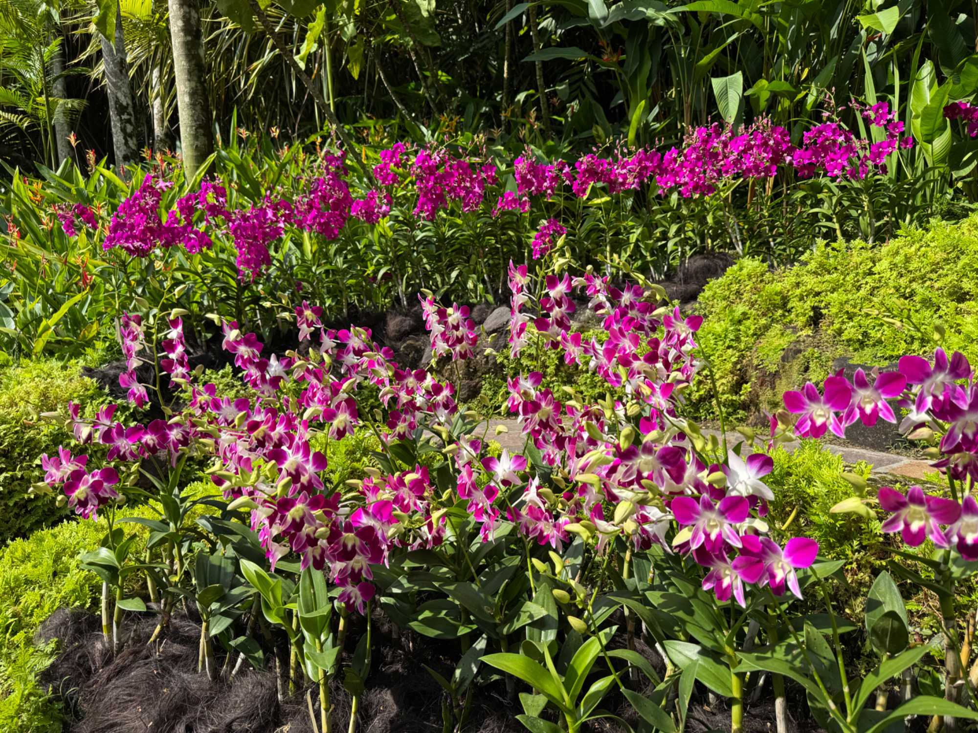 Notre visite de ce matin est celle du magnifique Jardin national de l’Orchidée. Difficile de décrire avec de simples mots cette fleur au doux parfum et toute fragile. Le Jardin National est situé dans les Jardins Botaniques de Singapour, il accueille une exposition de 60 000 orchidées répertoriées à l’intérieur de 400 espèces, ainsi que plus de 2 000 hybrides. Il est maintenant classé au Patrimoine national de l’Unesco. Nous prenons le temps de photographier plusieurs variétés d’orchidées. Ce fût bien court dans ce jardin car nous aurions pu y passer toute une journée. À la sortie, la petite boutique a été très populaire aussi !