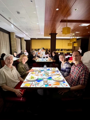 À 15h30, plusieurs voyageurs répondent à l’offre de Michel pour participer à une visite du navire pour se repérer plus facilement et connaître les principaux attraits. Nous faisons une petite rencontre et allons visiter l’exceptionnel secteur « Sky lounge » situé à l’avant du navire. C’est à 18h00 que les membres d’équipage retirent les amarres et c’est le départ en direction de la Thaïlande. Nos voyageurs sont bien installés sur les ponts extérieurs, certains avec un verre à la main, pour apprécier la belle vue sur la ville de Singapour. En fin d’après-midi, on se retrouve pour un apéro au « Ensemble Lounge ». On discute, on rit, on prend un verre et on célèbre notre première soirée en mer. À 19h00, tous les voyageurs sont invités à prendre leur premier souper à bord tous ensemble puisque Louise nous invite au restaurant « Le Petit Chef ». Quel délicieux repas nous y avons pris complété par une animation vidéo dans notre assiette et sur notre table. La croisière débute d’une manière éblouissante ! Les membres de notre groupe apprennent à se connaître et l’ambiance est excellente.