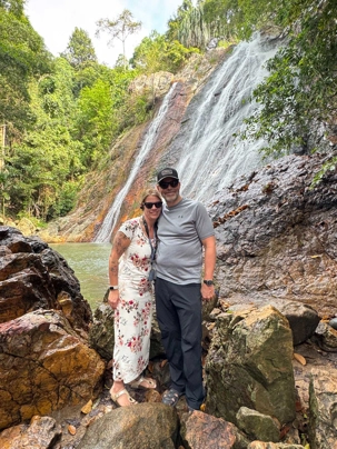 Pour notre premier arrêt, nous allons visiter la Cascade de NaMuang. En effet, Koh Samui, mise à part ses temples majestueux, est aussi célèbre pour ses plages paradisiaques et ses cascades spectaculaires. Ces chutes d’eau offrent un spectacle naturel époustouflant ainsi que des opportunités de baignade et de randonnée. La cascade Na Muang est un véritable joyau naturel et elle s’impose comme l’une des attractions les plus prisées de l’île. Située au cœur de la jungle luxuriante du sud, cette chute d’eau spectaculaire attire chaque année des milliers de visiteurs. Haute de 18 mètres, la cascade Na Muang offre un spectacle saisissant lorsque ses eaux se déversent sur les roches violacées qui lui ont donné son nom, « Na Muang » signifiant « cascade pourpre » en thaï. À sa base, une piscine naturelle aux eaux cristallines invite à la baignade,