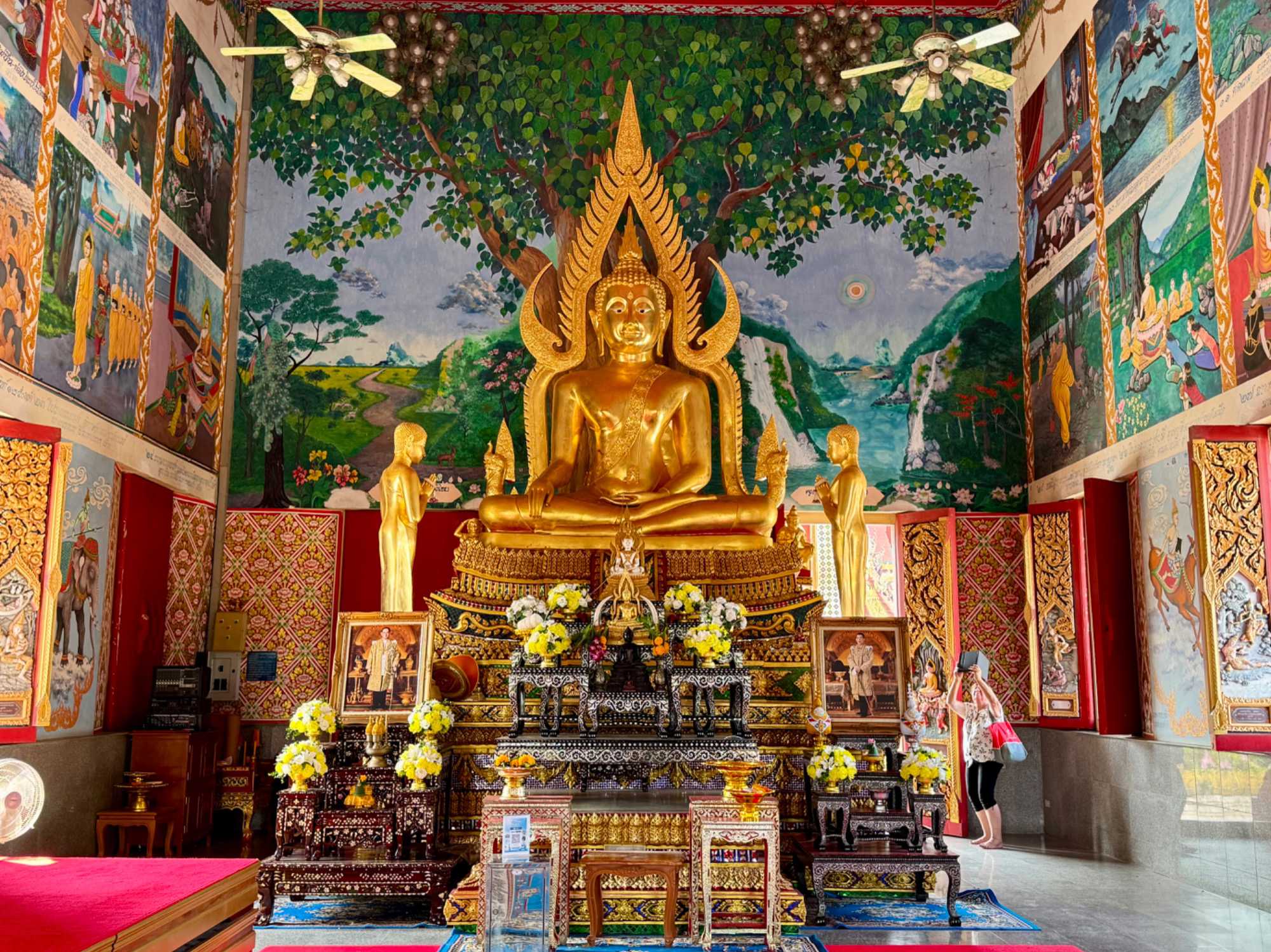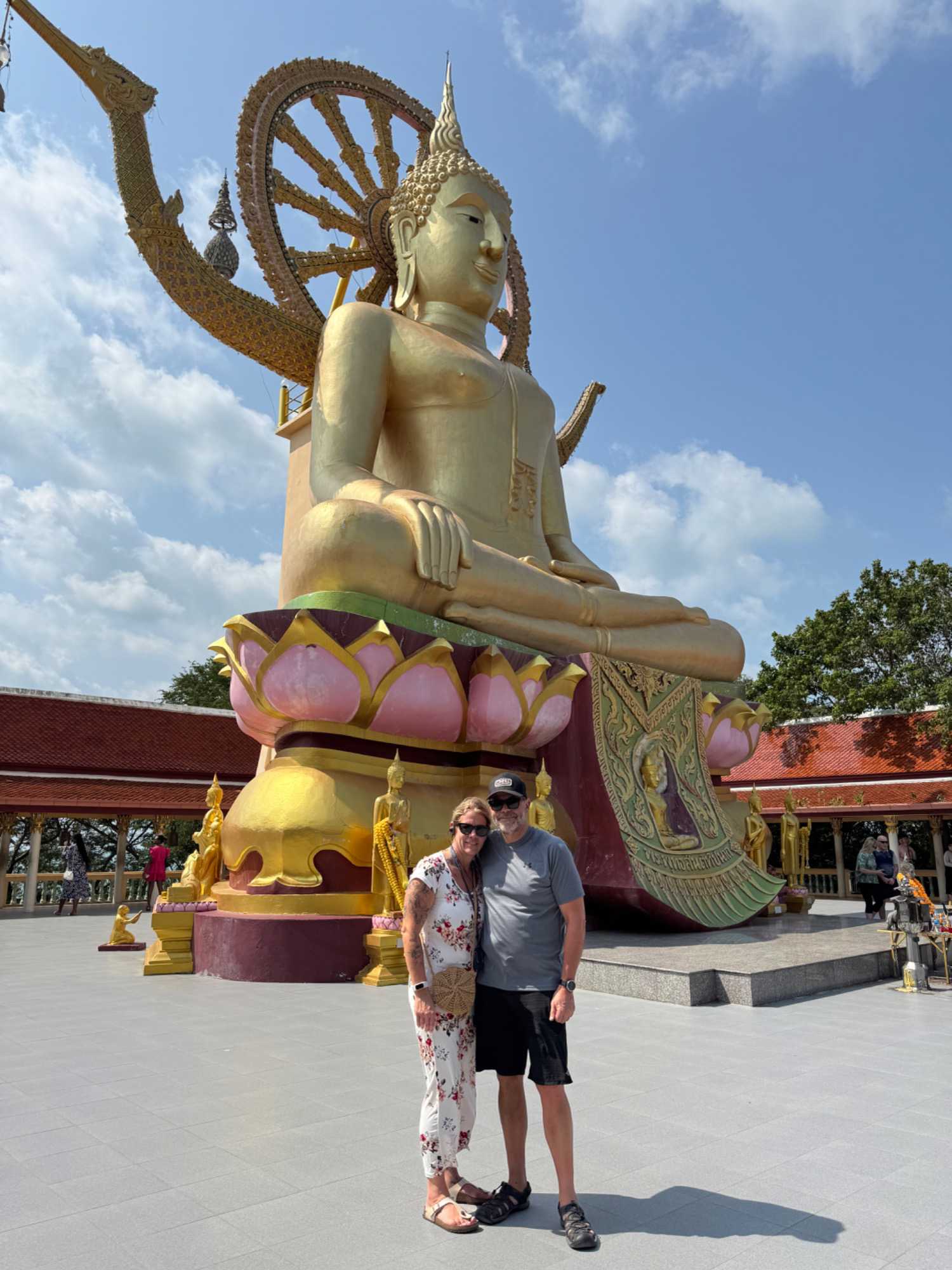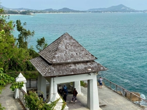 Notre autre arrêt est au célèbre temple Wat Phra Yai avec sa statue de Bouddha dorée situé au sommet de 80 marches. Il occupe une petite île reliée à Ko Samui par une chaussée surélevée. C’est le monument le plus célèbre de Samui. Perchée sur le point culminant de la colline de Pratumnak, la statue de Bouddha dorée de 18 mètres du Wat Phra Yai est un véritable spectacle. La statue a été construite dans les années 1940 et représente non seulement un symbole religieux important, mais aussi une merveille architecturale. Le regard serein du Bouddha surplombe la ville animée et les eaux tranquilles de la baie de Pattaya, créant une harmonie parfaite entre la nature et la spiritualité. Le temple du Grand Bouddha revêt une importance culturelle et religieuse considérable en Thaïlande. Il sert de lieu de culte et de méditation pour les bouddhistes, ainsi que de point de repère culturel pour les touristes. Le complexe du temple comprend également plusieurs statues de Bouddha plus petites, chacune représentant différentes étapes de l’illumination et de la sagesse. La zone est souvent remplie d’arômes d’encens et de bouddhistes fervents qui font des offrandes et des prières. Au-delà de la grande statue, l’enceinte du temple est ornée de sanctuaires complexes, de statues plus petites et de magnifiques jardins paysagers. En nous promenant dans la région, nous rencontrons des moines et des habitants qui s’adonnent à des rituels quotidiens. En explorant les différents pavillons, nous pouvons admirer d’impressionnantes peintures murales et en apprendre davantage sur les enseignements bouddhistes. L’un des points forts de la visite du temple du Grand Bouddha est la vue panoramique depuis la colline de Pratumnak.