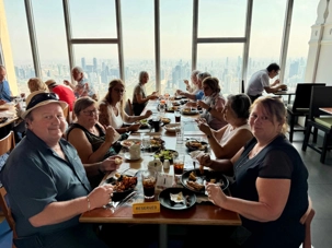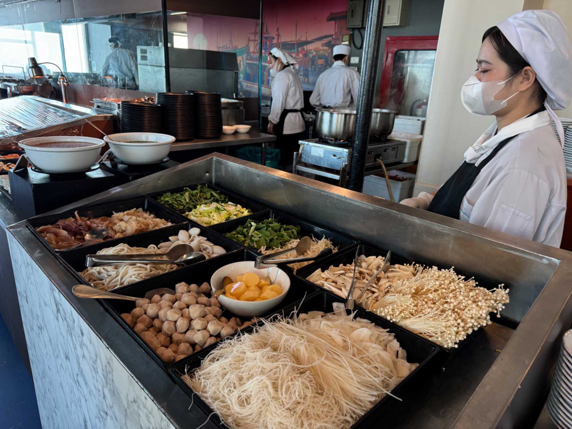 C’est maintenant le temps de passer à table et d’aller dîner. Supot nous amène au restaurant buffet de l’hôtel Baiyoke Sky. Pour s’y rendre, nous prenons deux ascenseurs nous menant au 77ième étage. Nous avons une vue panoramique sur toute la ville autour du restaurant. Nous devons manger un peu vite pour rencontrer le temps nécessaire pour retourner au navire. Nous avons tout de même fait toutes les visites prévues au programme.