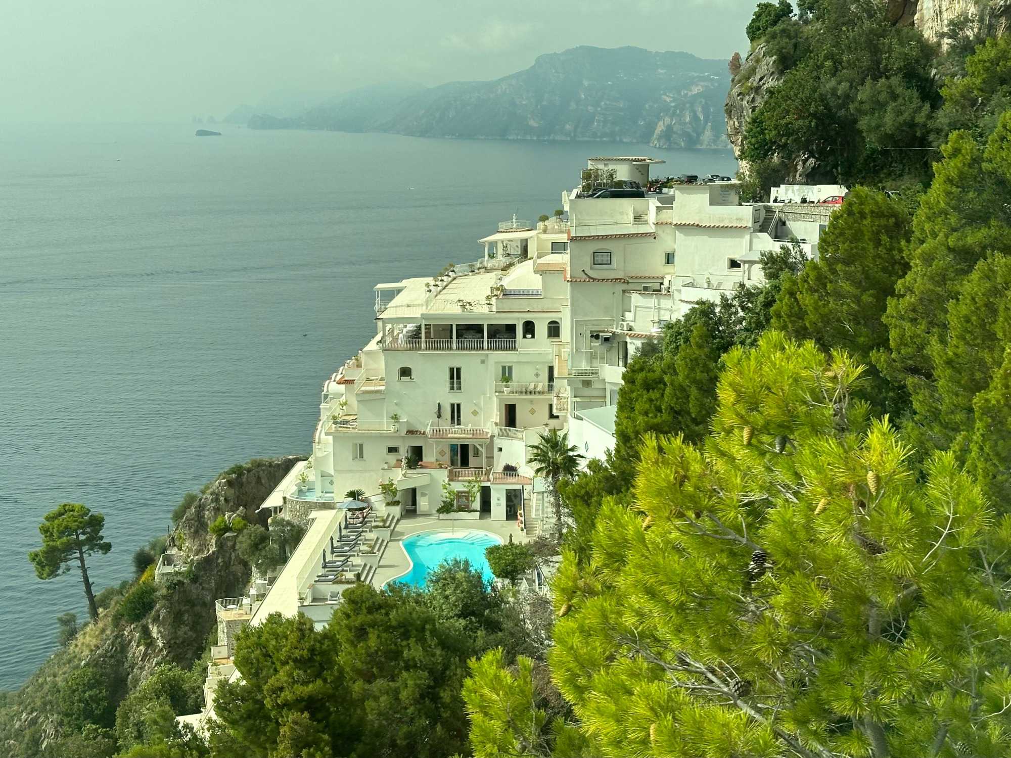 Nous ne savions pas encore que nous allions vivre toute une expérience. Accrochez-vous bien à votre siège. Cette route ultra sinueuse à flanc de montagnes, côtoie des corniches escarpées et des virages en tête d’épingle. Elle nous offre, à chaque tournant, des vues splendides sur ces paysages uniques qui sont à couper le souffle! Erminia nous a montré la villa cossue de Sofia Lorraine. Passage à Positano, un village vertical, l’une des plus belles villes côtières en Italie, où a été filmé “Sous le soleil de la Toscane” et paysage chouchou des Instagrammers. On peut voir des centaines de bateaux de plaisance ancrés dans la baie.