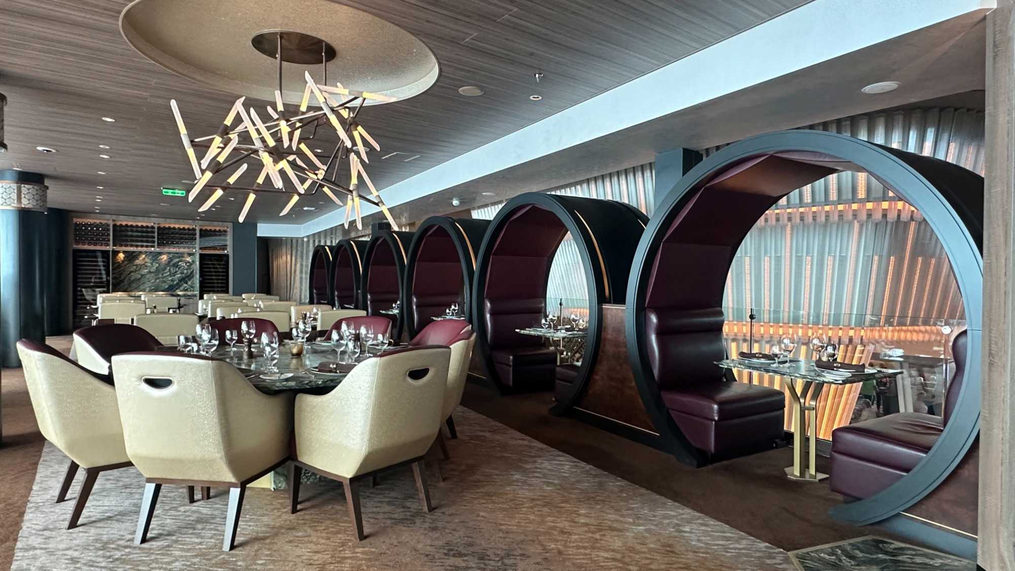 Le Ascent fend la vague à 20 nœuds sans même qu’on s’en rende compte. Pendant ce temps, le capitaine Tasos Kafetzis nous fait le plaisir de donner une conférence au théâtre sur la construction de ce navire et les faits cocaces du Ascent. Nous apprenons que ce joyau des mers a coûté la modique somme de 1,2 milliards de dollars américain. Il a été assemblé à Saint-Nazaire en France et qu’il n’y a pas un capitaine, mais bien deux. En effet, les deux frères, Tasos et Dimitrios Kafetzis étaient capitaines d’autres navires de la flotte de Celebrity avant d’être réunis en tant que co-capitaines du Ascent, fraîchement inauguré le 29 novembre 2023. On apprend aussi qu’il a deux marraines, la Capitaine Sandy et sa sœur Michèle. Chacun dit être le meilleur capitaine quand on leur pose la question ! Il nous parle et nous montre avec fierté certaines manœuvres difficiles qu’il doit effectuer dans les ports d’escale comme le Pirée, Malte, Ste-Lucie. Ouf, c’est impressionnant!
