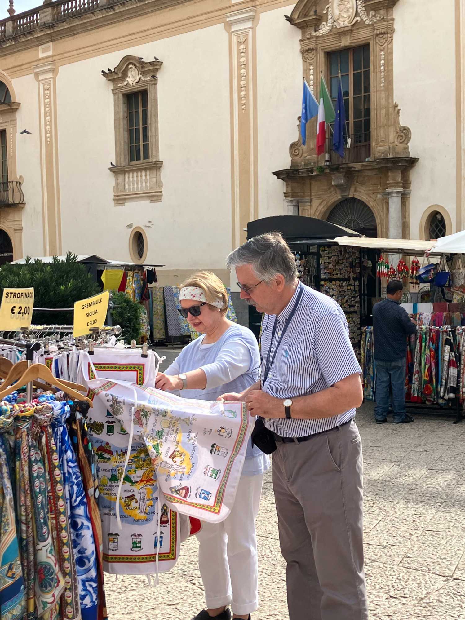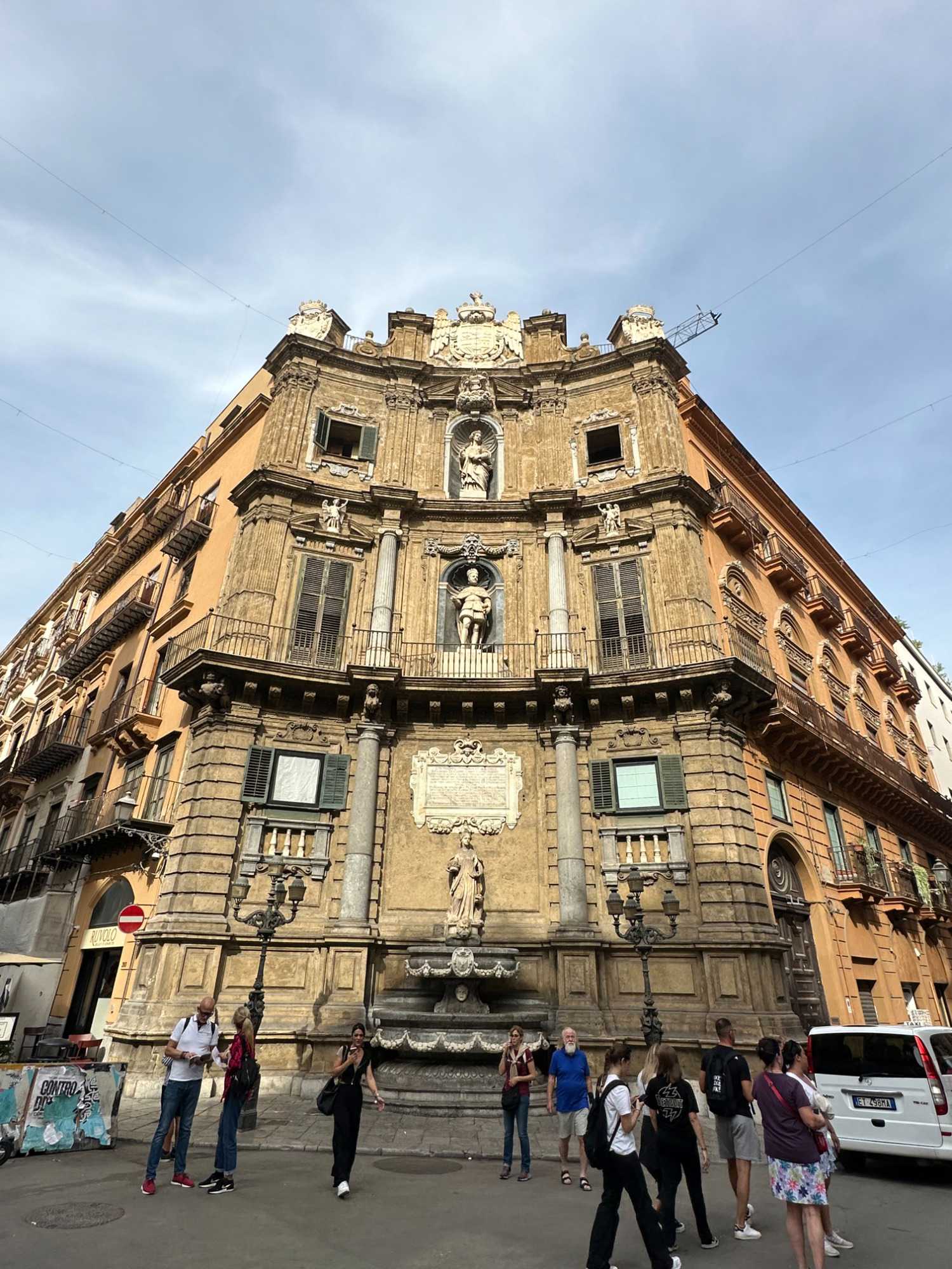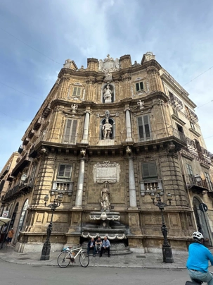 Nous descendons du Ascent pour rejoindre Anna-Maria qui a beaucoup d’expérience à titre de guide locale à notre plus grand bonheur. La visite de Palerme commence par un tour d’orientation de la ville pendant qu’Anna-Maria nous partage les points essentiels qui ont fait de Palerme ce qu’elle est aujourd’hui, c’est-à-dire une ville aux architectures bigarrées que des siècles d’occupation espagnole, ottomane, normande, grecque et romaine ont façonnée.