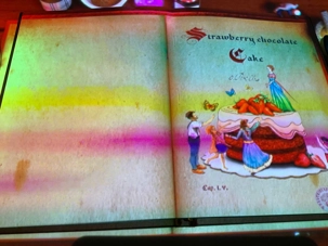 Vous avez regardez les photos en premier, avant de lire le texte, avouez? Vous avez pensé à une erreur? Un mélange de photos de Walt Disney? Non, non, vous avez bien vu. Madame Louise Drouin a eu la bonne idée d'offrir à ses voyageurs un repas de spécialité au "Petit Chef". Les photos démontrent bien notre expérience fusion entre la gastronomie et le multimédia. WOW! Imaginez une bande dessinée dans votre assiette avec le "petit chef" qui présente chacun de nos 4 services. Une soupe veloutée de pommes de terre, poireaux et autres ingrédients secrets, suivi d'une entrée de poisson et comme mets principal pour la plupart d'entre nous, d'un bœuf Wellington d'une tendresse ...infinie. Non, nous n'allions pas oublier le dessert, une mousse chocolatée digne des dieux. Finalement, le navire a largué les amarres sans que nous nous en rendions compte, trop occupés par l'expérience. Ah, merci madame Drouin, vous nous avez eu par le ventre!