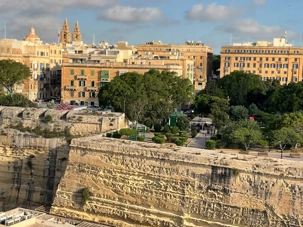Lors d’une balade libre sur les remparts du Bastion, aux jardins Barrakka (hangar en maltais), on a pu apercevoir une vue panoramique sur le Grand Port et les Trois Cités. Nous sommes arrivés juste à temps pour le coup de canon à midi. Une particularité nous intrigue, tous les balcons sont extérieurs, c’est bien étrange de voir ses structures avancées par rapport aux murs extérieurs. On nous mentionne qu’ils permettaient de garder la maison plus fraîche.