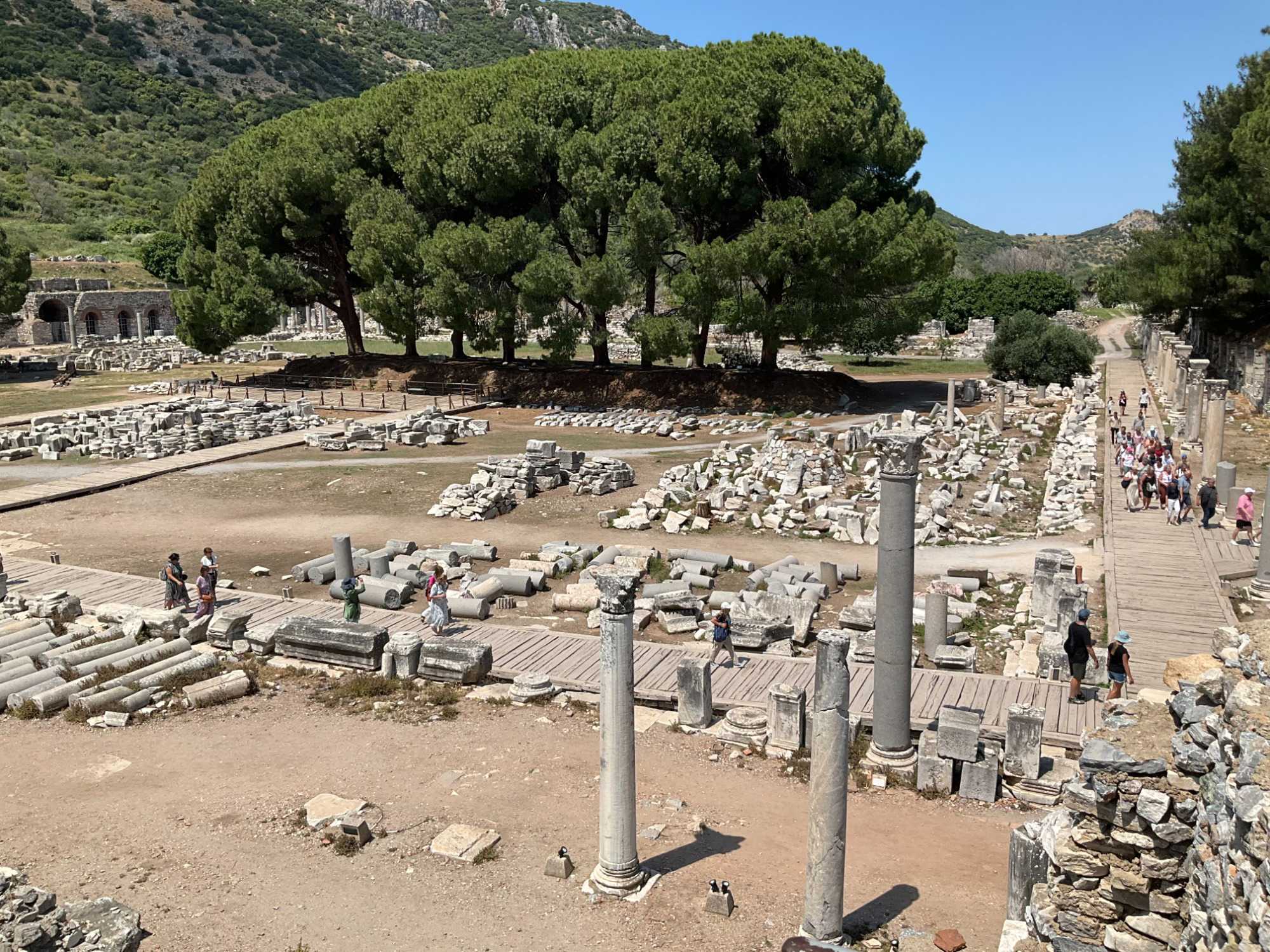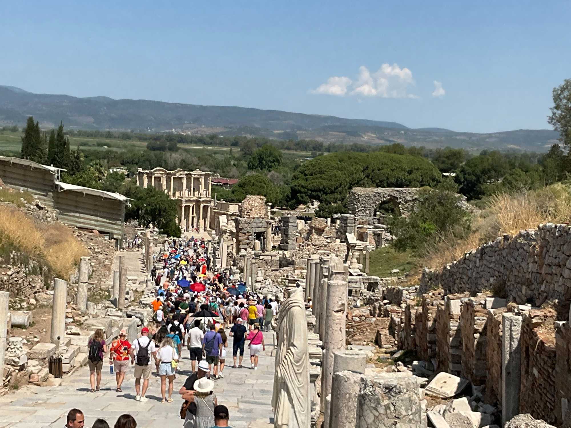 Maintenant, je vous invite à remonter le temps avec nous et à marcher aux côtés des habitants d’Éphèse d'il y a 4000 ans avec notre guide Aynur qui nous explique les amphithéâtres, la bibliothèque, les bains publics… Vous déambulerez avec nous sur le marbre d'origine (attention, très glissant), là où l'histoire a laissé sa trace pour les générations futures. Il y a assez de marbre ici pour faire tous les comptoirs de cuisine de la ville de Montréal ! Transportons-nous dans une ville grecque et romaine et, là même où l’on trouve la maison où est morte la Vierge Marie et également un site archéologique datant du 14e au 9e siècle avant notre ère. Pour toutes ces raisons et plus encore, Éphèse fait bonne figure parmi les membres du club sélect du Patrimoine mondial de l’Unesco.