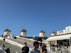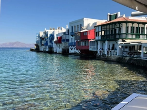 Positionnés sur la colline des moulins, on a pu aperçu le quartier de ‘’Little Venice’’, élément incontournable à Mykonos. La Petite Venise de Mykonos paraît l'un des endroits les plus romantiques de l'île avec ses vieilles maisons élégantes et ses coquets balcons comme des dés, surplombants la mer Égée. Évidemment, Mykonos présente de nombreux bars de bord de mer qui proposent une vue imprenable sur la mer et …d'excellents cocktails, certains de nos voyageurs s’y sont sûrement arrêtés. Il paraît que la bière locale y est meilleure que partout ailleurs. L’air de nonchalance qui règne désarmerait même les voyageurs les plus exigeants. Avec le quartier des Moulins, on a pu remarquer que ce dernier se retrouve sur nombres de gravures achetées par les touristes.