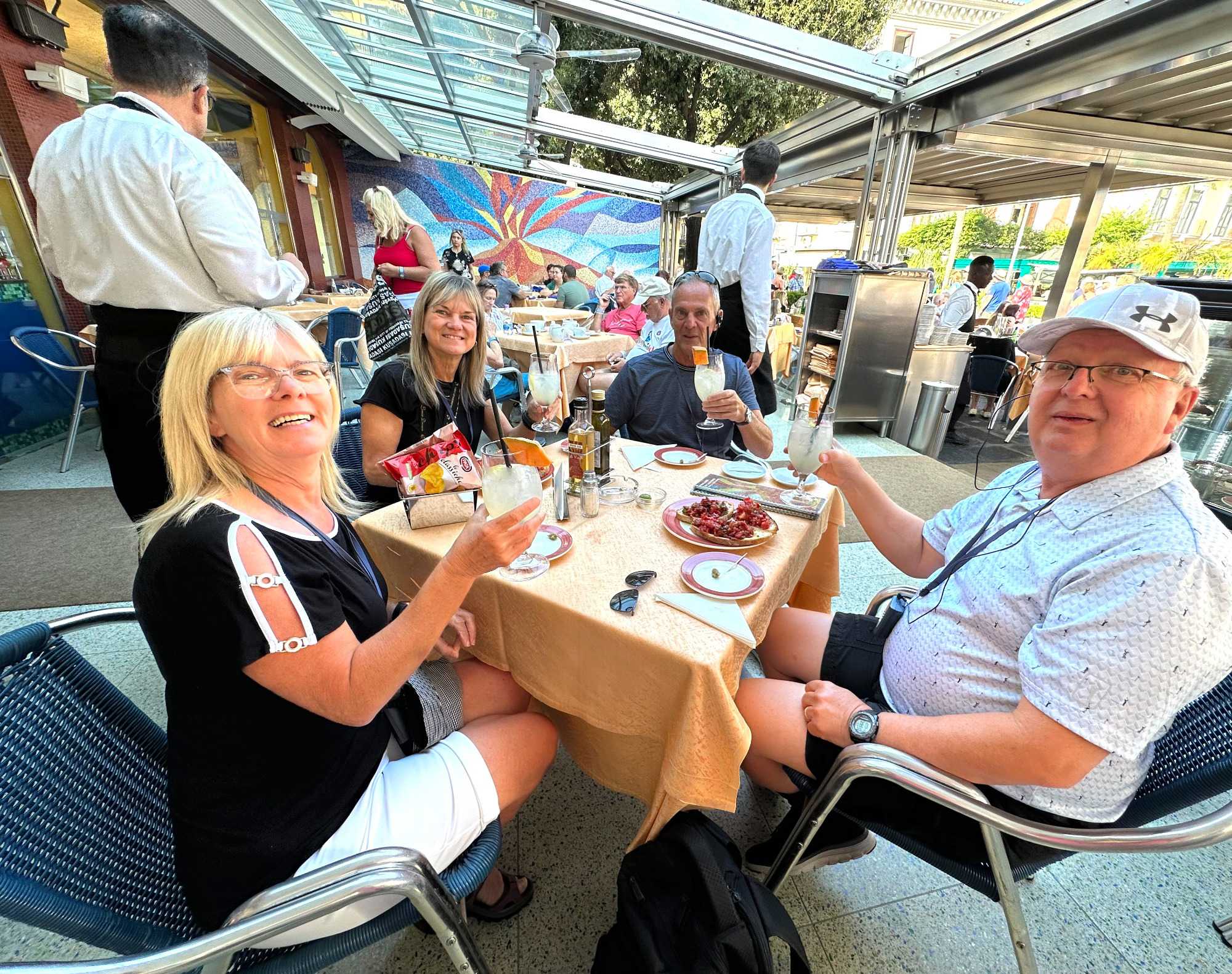 Une succession de petites baies, de plages, de plantations, d’hôtels, de châteaux nous a menés jusqu’à Sorrento. Notre premier arrêt dans ce berceau de la célèbre liqueur limoncello sera au goût du limoncello spritz et de la bruschetta, sur une belle terrasse couverte et riche en belles céramiques.