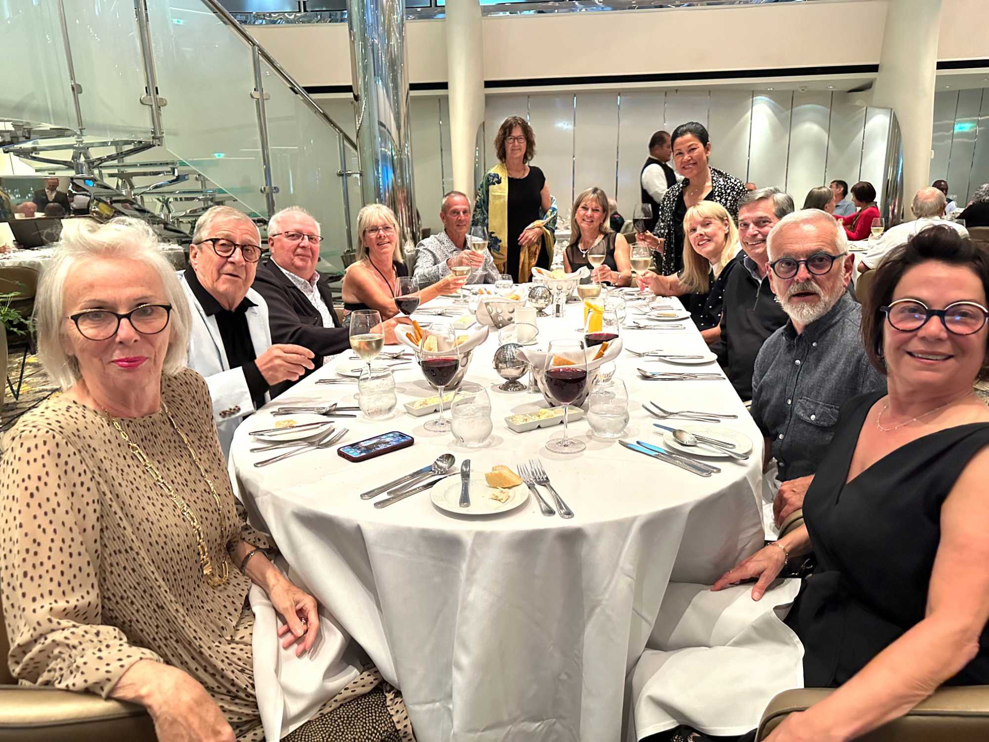 Ce soir, c’est l’élégance ‘’Evening chic’’ tout le monde se met beau et belle pour le souper, nos deux tables réservées sont pleines. Prises de photos. Après le repas, les gens se dirigent vers les différents divertissements et spectacles offerts. Demain, grasse matinée : ce sera la journée en mer.