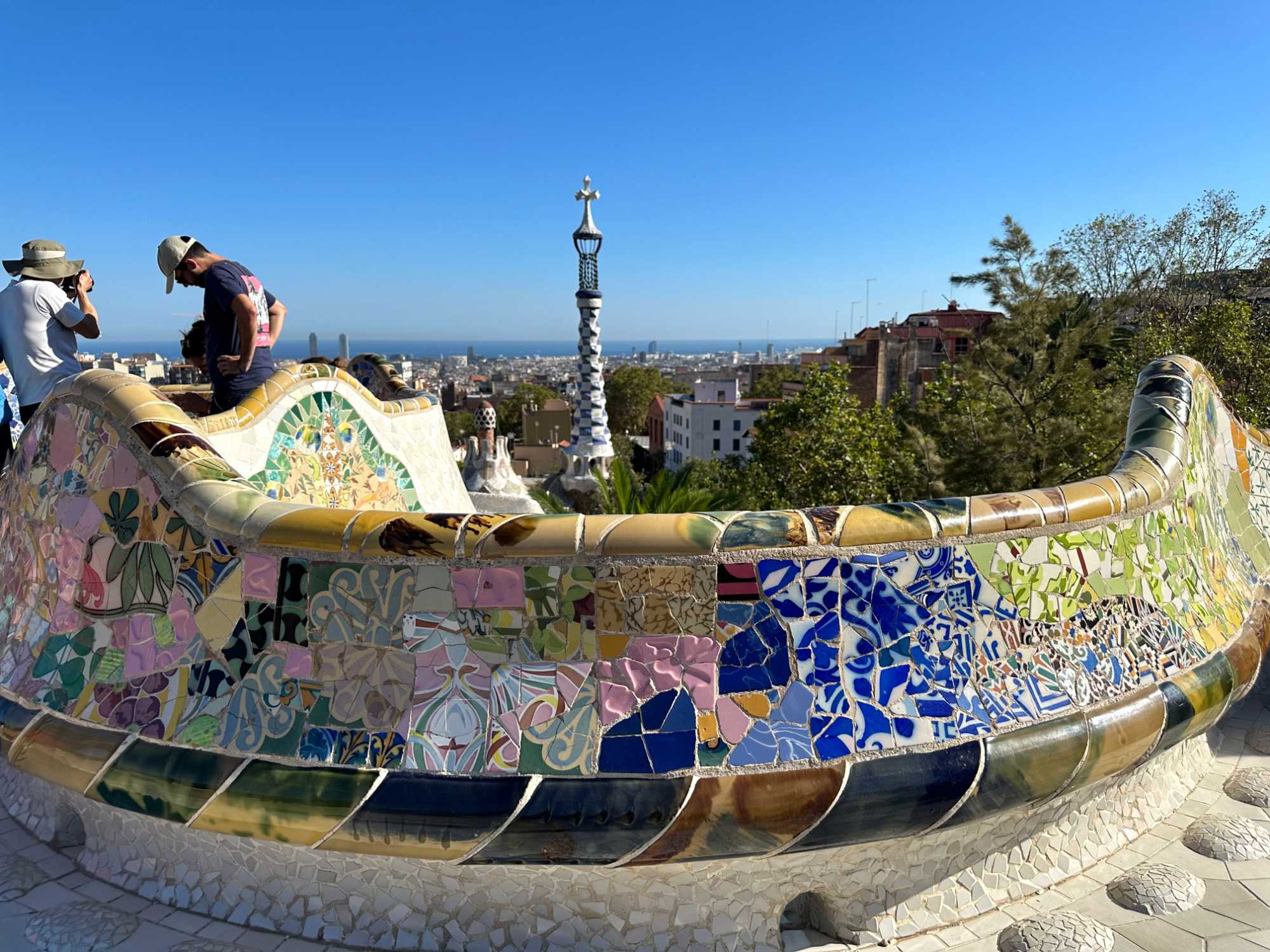 Avant de s’y installer, c’est le matin du débarquement. Tout se déroule à merveille. Nous passerons la journée à Barcelone. Une fois dépassé le terminal du bateau Reflection, Miquel vient nous rejoindre. Guide du premier jour à Barcelone, il nous revient. Il est, paraît-il, un des meilleurs de Barcelone ! Aujourd’hui, le jour de sa fête, il nous offre le meilleur de lui-même. Il nous fait le cadeau de nous accompagner et de nous partager ses connaissances, mariant savoir-faire et humour. D’abord pour un tour panoramique de Barcelone et ensuite pour les visites successives de la Sagrada Familia et du parc de Güell. Miquel est aussi le nom de notre chauffeur.