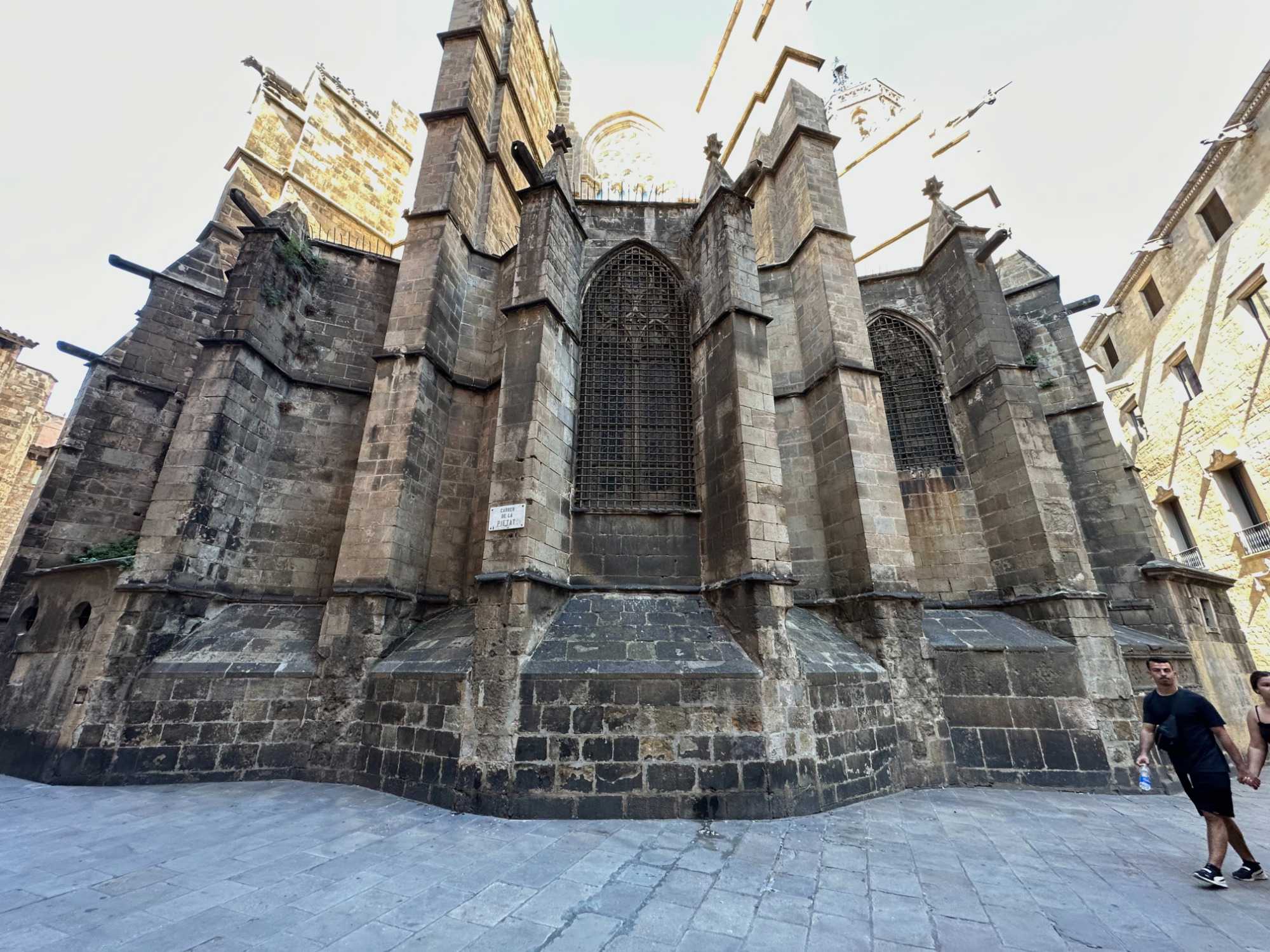 La cathédrale basilique métropolitaine de Sainte croix de Barcelone et de Ste-Eulalie est la cathédrale de l’archidiocèse de Barcelone. De style gothique, elle est l’actuelle survivante de cathédrales de divers types d’influences ayant été construites, tour à tour, sur le même emplacement : Romane, Wisigoths, paléochrétienne. Sur sa flèche centrale, Ste-Hélène veille portant sa croix.