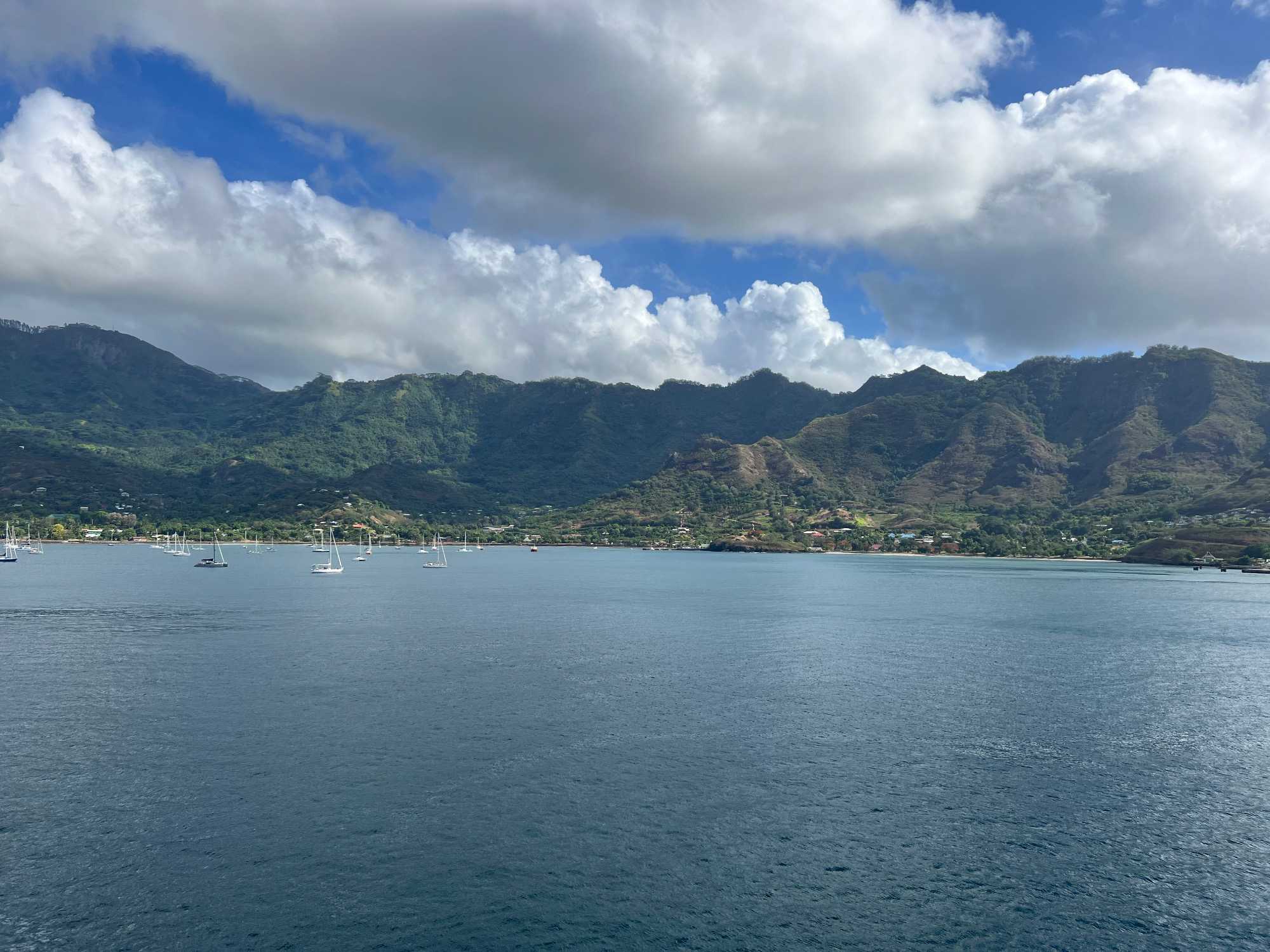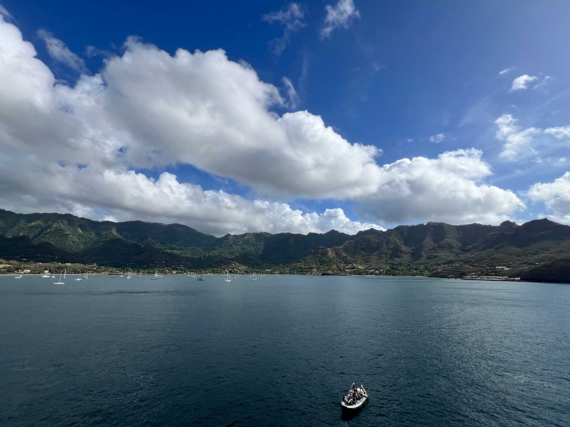 Déjà notre dernière île marquisienne. Elles sont toutes très jolies, avec chacune leur cachet unique. Ce matin nous arrivons dans la baie de Taiohae, à Nuku Hiva. L’île de Nuku Hiva au relief très marqué, charme par sa beauté sauvage, et surprend par la richesse de sa culture et de son histoire. C’est dans une très jolie baie, qui offre un havre pour les voiliers, qui naviguent le Pacifique, que notre navire jette l’ancre pour la journée.
