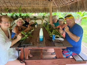 Nos guides nous ont ensuite amenés, toujours dans la bonne humeur et la joie, sur le motu du capitaine. De père en fils, ce motu reste dans la famille. La famille est si importante pour les Polynésiens. Délicieux repas et surtout tellement reposant. Nos trois capitaines nous ont fait une démonstration de leur culture avec les paniers tressés et les noix de coco. C’était juste une journée parfaite quoi!