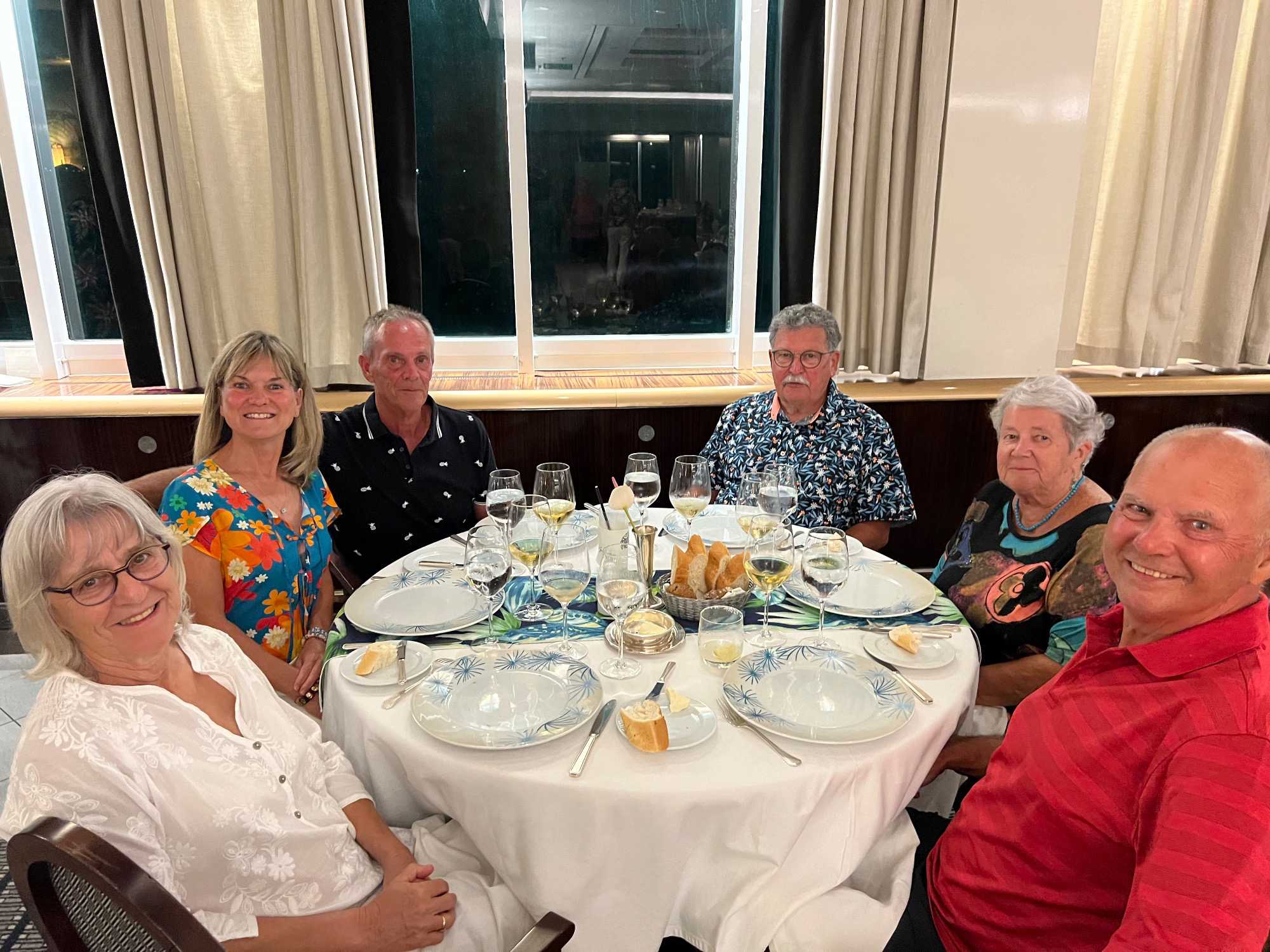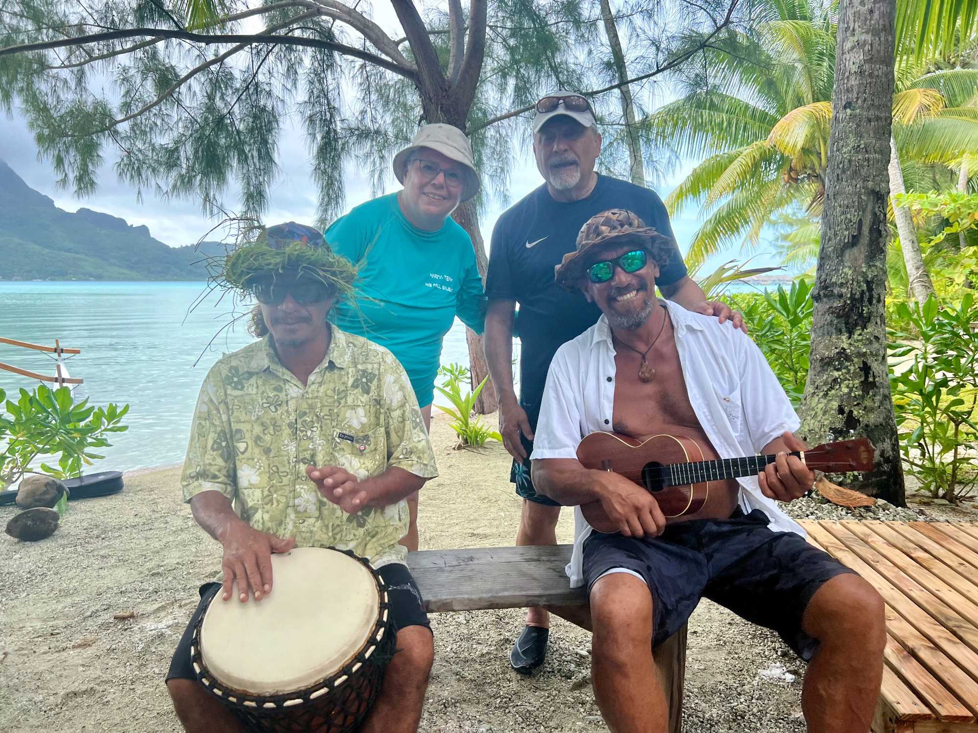 En soirée, nous avons assister à un spectacle culturel local avec une troupe de danse de Bora Bora montée à bord de notre navire pour l’occasion. Très joli comme spectacle. Nous avons eu trois membres de notre groupe qui y ont participé: les belles Sonia et Danielle, ainsi que notre infatigable Daniel. Bravo à vous trois, vous étiez merveilleux!