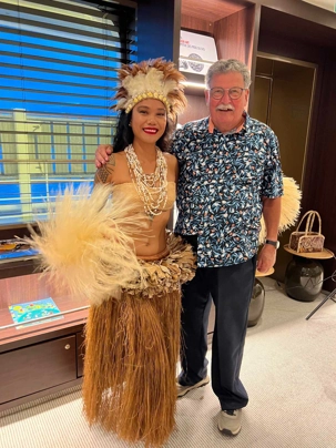 Au navire, c ‘était la journée « Polynésie » avec pleins d’activités. On pouvait se fabriquer des colliers de fleurs et couronne de tête. On pouvait rencontrer des polynésiens montés à bord pour nous divertir au son de la musique et se faire prendre en photo avec les Gauguins et Gauguines.