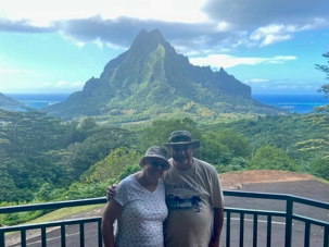 Notre tour est intitulé « Nature et Culture à Moorea ». Nous découvrons l’île au fil de leurs Ā’amu (légendes) polynésiennes et de quelques anecdotes filmographiques. Nous apprenons sur la faune, la flore et leurs Peu (coutumes) au milieu de sites magnifiques. Nous voyons ainsi les majestueuses baies de Cook et d’Opunohu: véritables décors de cartes postales (baies parmi les plus photogéniques du Pacifique); les vestiges du volcan ainsi que le fameux plateau de tournage du film « Les Révoltés de la Bounty ». Puis nous prenons quelques photos sur le point de vue panoramique du Belvédère. C’est encore vraiment très beau. Nous nous arrêtons également au domaine de l’unique lycée agricole de Polynésie avec ses plantations de fruits tropicaux. C’est suivi d’une visite de la fabrique Rotui où l’on savoure jus de fruits et alcool produits sur l'île. Cette visite nous permet de découvrir les jus de fruits tropicaux et autres productions locales. L’ordre des visites a été modifié dans les 2 visites mais tout a été vu par les 2 groupes.