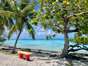Quelques voyageurs avaient opté pour des activités diverses et les autres nous ont suivi Céline et moi pour une petite marche à Fakarava afin de trouver une plage agréable. Nous avons trouvé un endroit avec assez d’arbres pour avoir de l’ombre et une eau limpide et bleu turquoise. Le fond dû à la formation de cette île coralienne était parsemé de petites pierres et de coquillages, vive les souliers de plage aujourd’hui mais comment ne pas résister à ces beaux paysages avec ce beau soleil. En après-midi, j’avais opté pour une découverte des fonds marins avec une jolie expédition de plongée en apnée. C’était vraiment très beau et avec tant de poissons, nous avons même vu une tortue et quelques requins. Une très jolie sortie pour les amateurs de plongée en apnée.