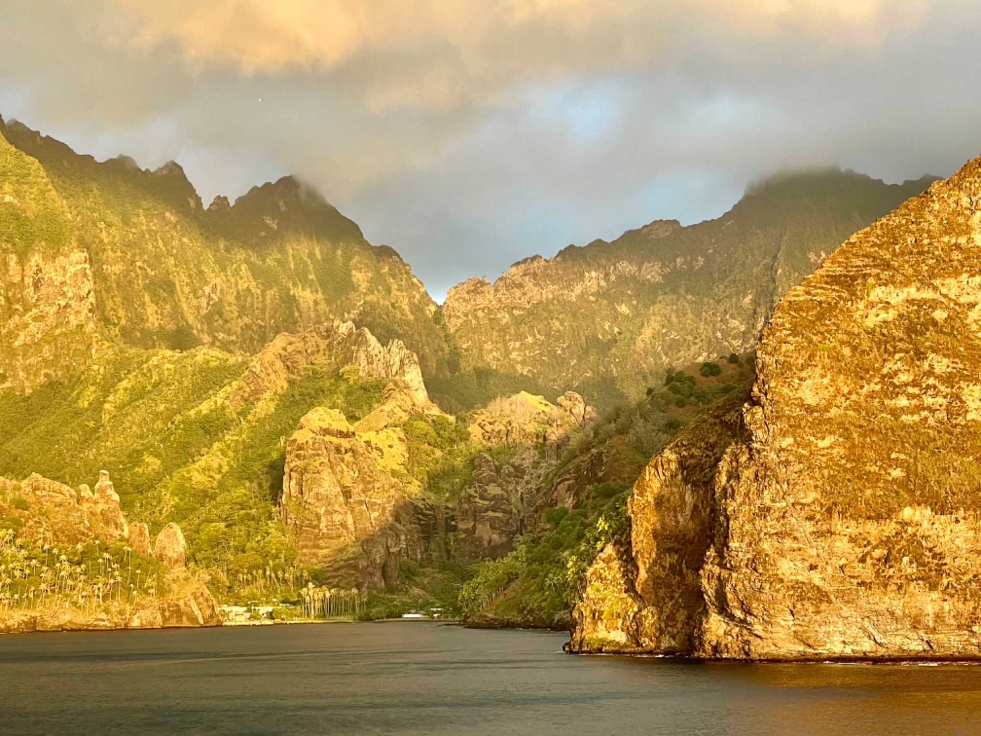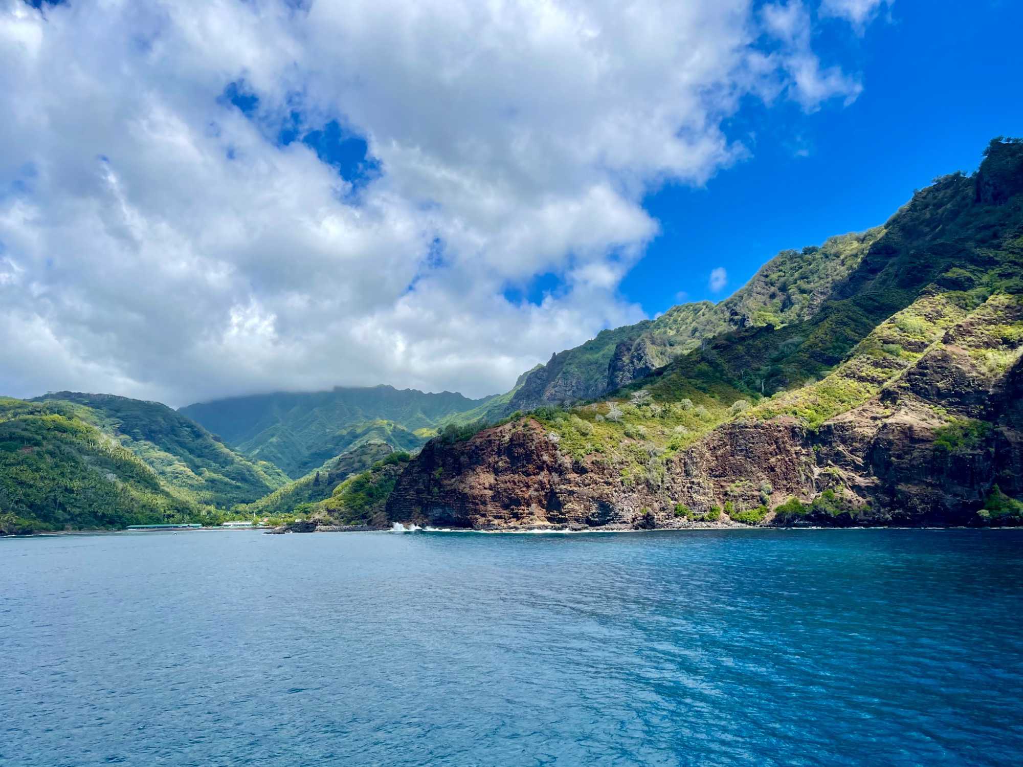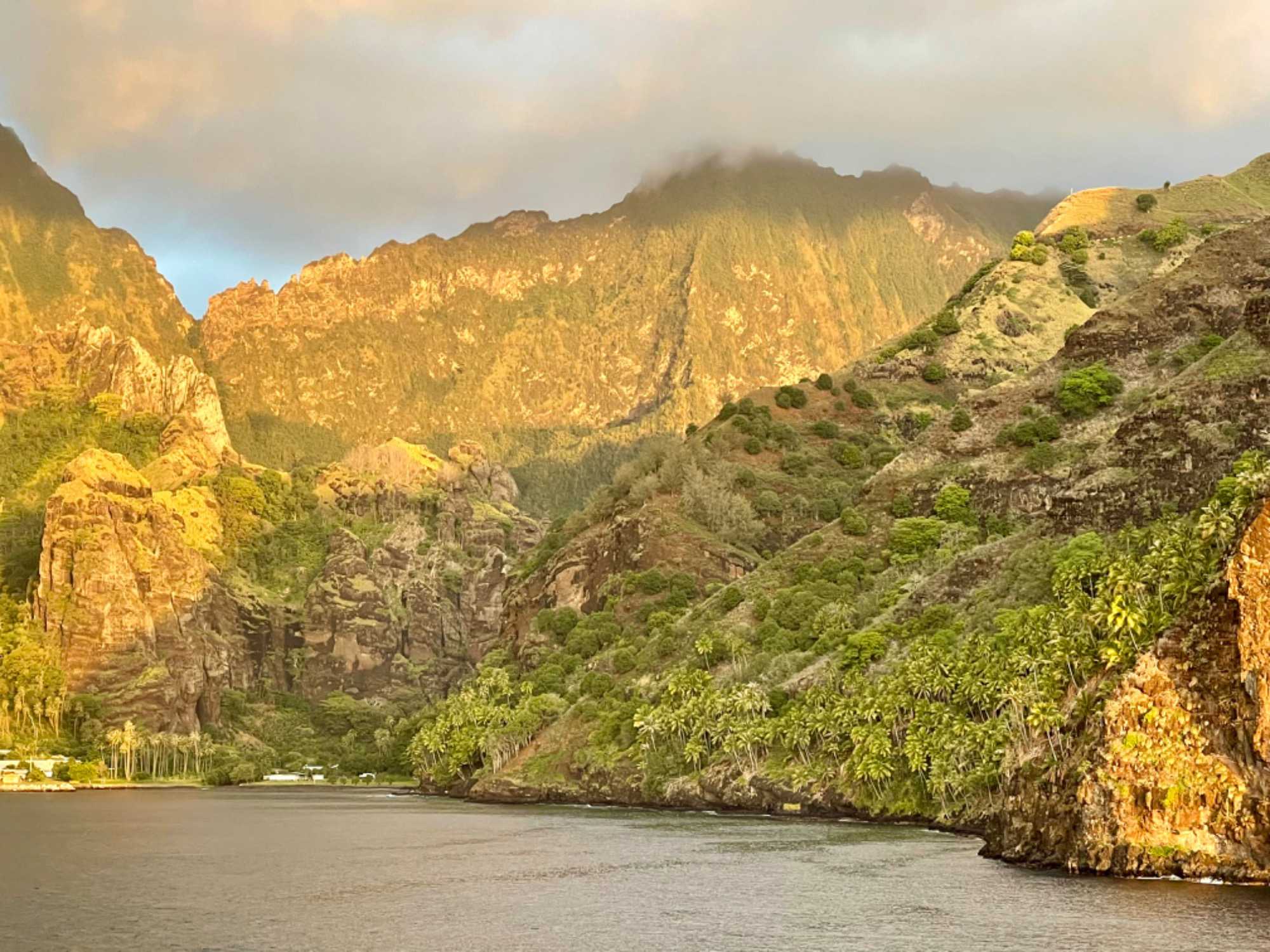 Wow! Wow et WOW! Quelle belle arrivée aux Marquises, l’on se réveille à 6 h pour voir cette arrivée dans l’archipel des Marquises. Quelle chance comme depuis le début il fait très beau avec quelques nuages mais rien de dangereux. Nous avons ce matin, une belle excursion de prévue avec le navire pour aller en 4X4 visiter les plus beaux panoramas de l’île et voir les deux villages.