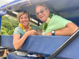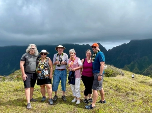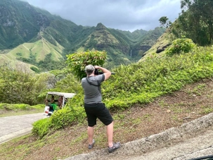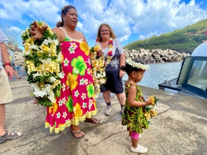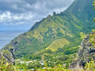 Le tourisme est limité en raison de l'absence d'aéroport, bien que l'île soit visitée par des bateaux de croisière. Les habitants doivent prendre un bateau pour se rendre dans l’île où se trouve l’aéroport environ 4 heures de navigation et on ajoute un bon 3 heures de vol pour rejoindre Tahiti. C’est tout un périple pour les habitants. Il n'y a qu'une infrastructure touristique limitée, sans banques, guichets automatiques ou taxis, et seulement des logements limités. Fatu Hiva n'a pas de plages de baignade. Peu importe les infrastructures nous sommes sur le charme de la beauté de cette île spectaculaire avec ses hautes falaises et sa végétation. Notre débarquement de nos bateaux navettes sur le petit quai est vraiment accueillant avec tous les conducteurs et le comité d’accueil avec la remise des colliers de fleurs à chacun de nous. Ces colliers sentent tellement bon qu’on les porte avec plaisir. L’accueil est fantastique et nous rencontrons nos chauffeurs pour notre avant-midi de déplacements sur l’île. C’est une super façon de visiter et nous sommes environ 20 voitures qui se faufileront sur la seule route de l’île qui relie les deux villages. Notre charmante conductrice Tehaina nous parlent avec plaisir et attachement de sa vie et de la vie des habitants de l’île. C’est super intéressant de l’écouter nous parler sans retenue de leur vie et de leurs anciennes coutumes. Nous quittons le village et déjà notre route nous amène dans la beauté escarpée de ces lieux. C’est magnifique et j’en profite pour faire plusieurs photos de mes voyageurs qui se trouvent aux points de vue en même temps que moi. La vie d’insulaire est très particulière car souvent des habitants de Tahiti tentent de venir s’installer aux Marquises et ils ne font pas plus de 4 mois même si ces lieux sont paradisiaques, je crois qu’il faut être né ici pour s’y habituer. Souvent les mariages sont difficiles car à la fin ils sont presque tous dans les mêmes familles…. Notre guide nous parle aussi de ses tatouages et avec une autre guide, j’ai fait un petit vidéo, que je tenterai de vous partager. L’histoire des tatouages aux Marquises est particulière et différente. Sur mes photos vous verrez des arbres fruitiers en quantité. Les mangues tombent par terre et ils en ont tellement, que notre guide nous dit, qu’ils ne peuvent pas tout manger des fruits que l’île produit. J’ai photographié un arbre qui produit nos délicieux cashews on voit le petit fruit mais c’est sur la noix qui s’y rattache que l’on extrait le caschew. On voit aussi l’arbre a pain, un arbre indispensable à la culture polynésienne, on voit aussi d’autres magnifiques arbres uniques à leur île. Nous avons eu la chance de manger de bon fruit frais lors de notre arrêt dans le village de l’autre côté. Les bananes frites que nous enrobions de coconut étaient délicieuse, le fruit de la passion, le pomelo (pamplemousse des îles) et les mangues, c’était tellement bon!