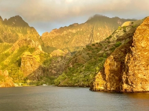 Maintenant venu le temps de revenir au navire. L’on se prépare à notre croisière au coucher du soleil pour voir l’île dans toute sa splendeur. Je peux juste vous dire que nous avons vécu un moment unique bercé par la musique et les chansons polynésiennes de nos gauguines, un petit cocktail à la main et les paysages qui défilaient sous nos yeux ébahis de voir tant de beautés. La preuve sera visuelle car je n’ai pas pu m’empêché aujourd’hui de faire la photographe japonaise et de vous ajouter plus de 230 photos…. bon c’est un peu un récit photo que j’aime bien vous faire espérant que mes photos vous plaisent autant que moi j’ai du plaisir à les prendre.