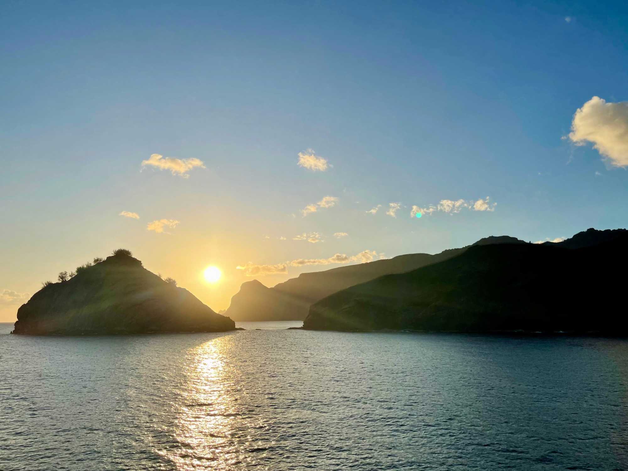 Encore quelques photos de cette belle île avant de revenir au navire. Une autre belle journée de soleil qui se solde encore une fois avec un splendide coucher de soleil sur les îles marquisiennes.