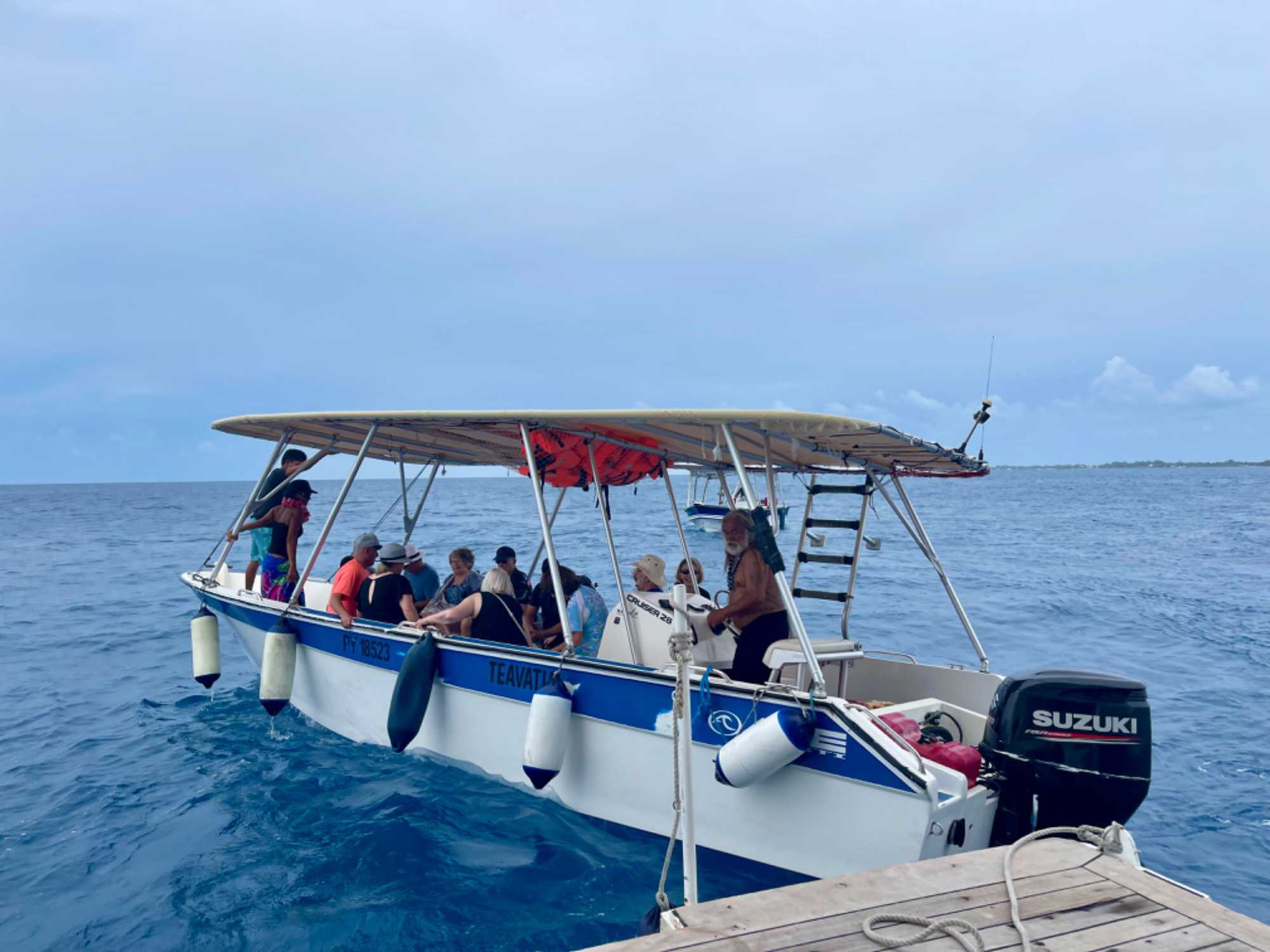 Nous étions heureux de se voir offrir d’aller en excursion au Lagon Vert ou au magnifique jardin de corail- où nous pourrons faire de la plongée en apnée. Nous étions 19 du groupe qui ont préféré la détente sur la plage avec un repas typique. Nous avons quitté le navire encore avec une superbe température et du soleil encore une fois. Nous avons pris directement de la marina de notre navire nos deux embarcations pour nous amener au Lagon vert. Ce fût une jolie excursion et la couleur de l’eau était incroyable. Nous avons profité de faire un peu de plongée en apnée et de se baigner dans cette eau si chaude. Un repas typique fût servi avant de revenir au navire car notre navire devait repartir à 14 h 00 pour être en temps demain matin à notre prochaine île, celle de Huahine.