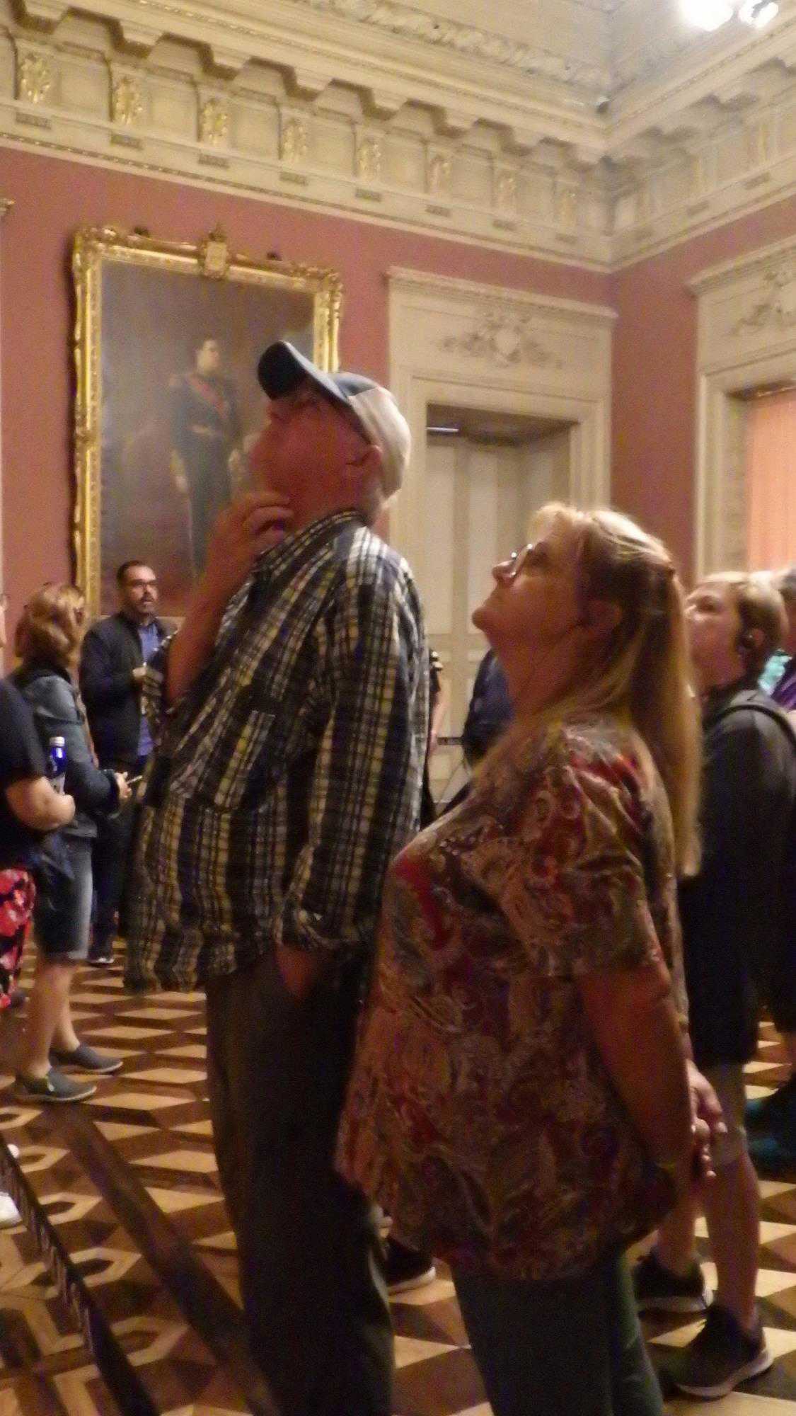 Notre prochain arrêt c’était le Palais de la Bourse, appelé aussi Palácio da Bolsa, qui nous ouvrait ses portes. Le bâtiment est de style néoclassique construit en 1834, époque à laquelle des négociants de la ville constituèrent une association de marchands. L’Association Commerciale de Porto, qui en fait la plus ancienne association d’entrepreneurs du Portugal, avait comme objectif de régler les différends commerciaux entre ses membres, des négociants en vin pour l’essentiel. Ancien marché boursier, et semble-t-il construit pour impressionner les potentiels investisseurs européens, l’édifice sert encore régulièrement de bureaux ou de salles pour des rencontres d’affaires, et aussi pour la tenue de certains concerts et évènements privés ou corporatifs. Plusieurs voyageurs ont été impressionnés par la richesse des peintures, gravures dans le granit, sans oublier les détails d’architecture dans le bois d’origine, ainsi que les sculptures faites en plâtres et joliment décorées avec art et doigté. En jetant un coup d’œil sur les photos vous saurez apprécier, vous aussi, la beauté de ce bâtiment.