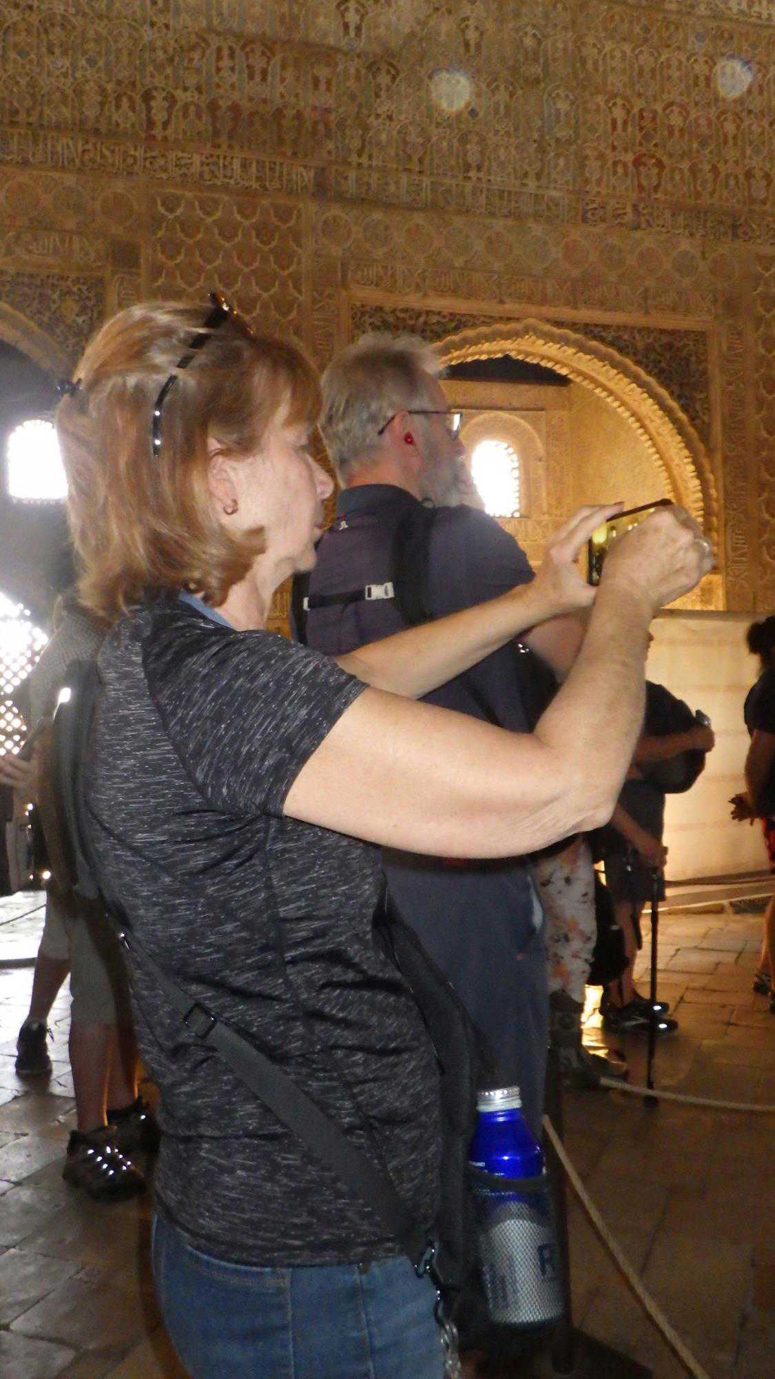 Vers midi, nous entrons dans le palais de l’Alhambra pour y découvrir ses merveilles. Beaucoup d’informations nous est données, Daniel est très intéressant à écouter. Pour ce genre de circuit, nos audio-guides sont plus que pratiques. Le guide n’a pas besoin d’être à nos côtés tout le temps, on peut prendre des photos tout en écoutant celui-ci et on y met le volume voulu pour nos oreilles. Très bon achat par Louise Drouin que ces petits appareils et je peux vous dire que nos voyageurs les apprécient beaucoup !