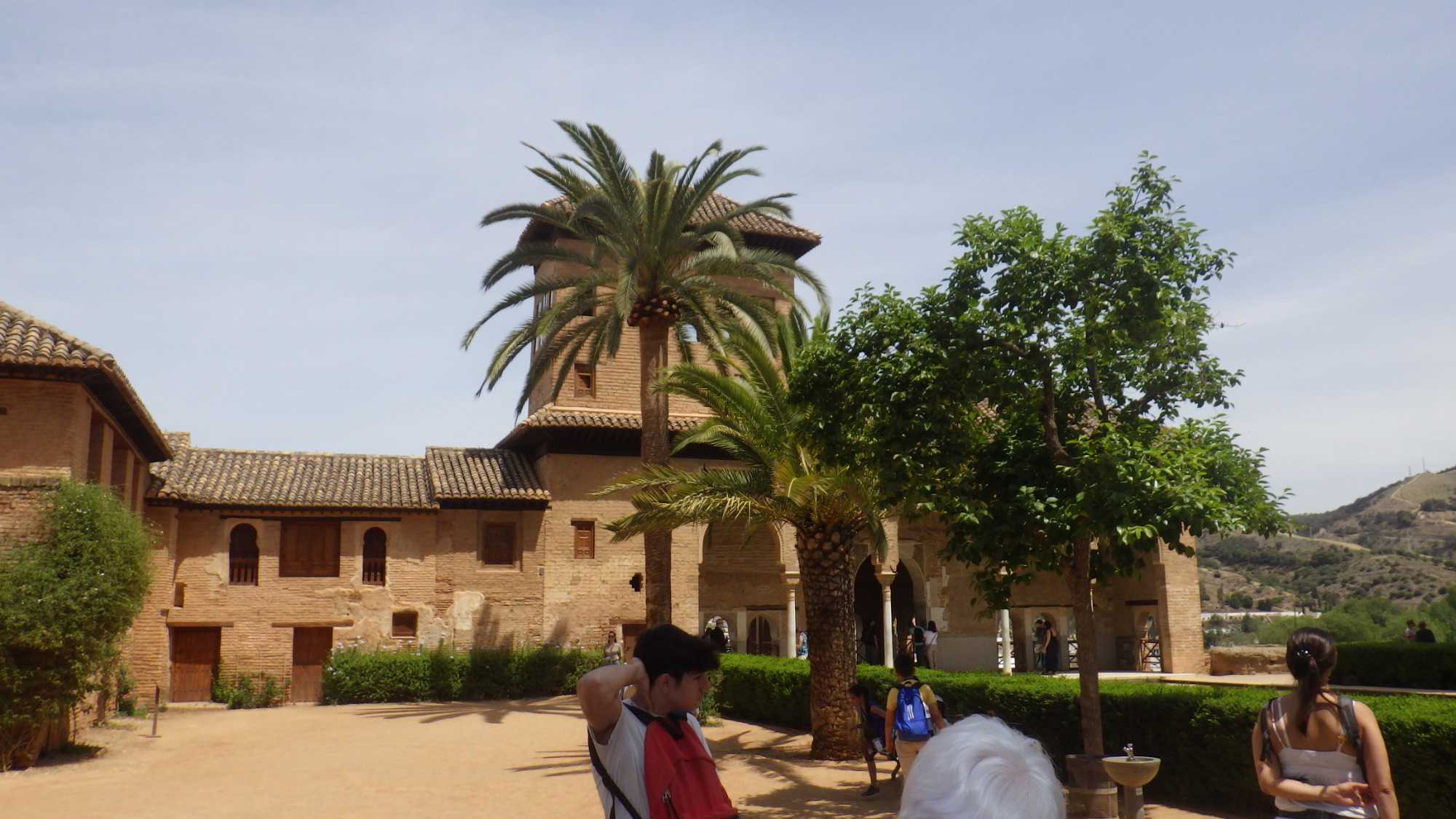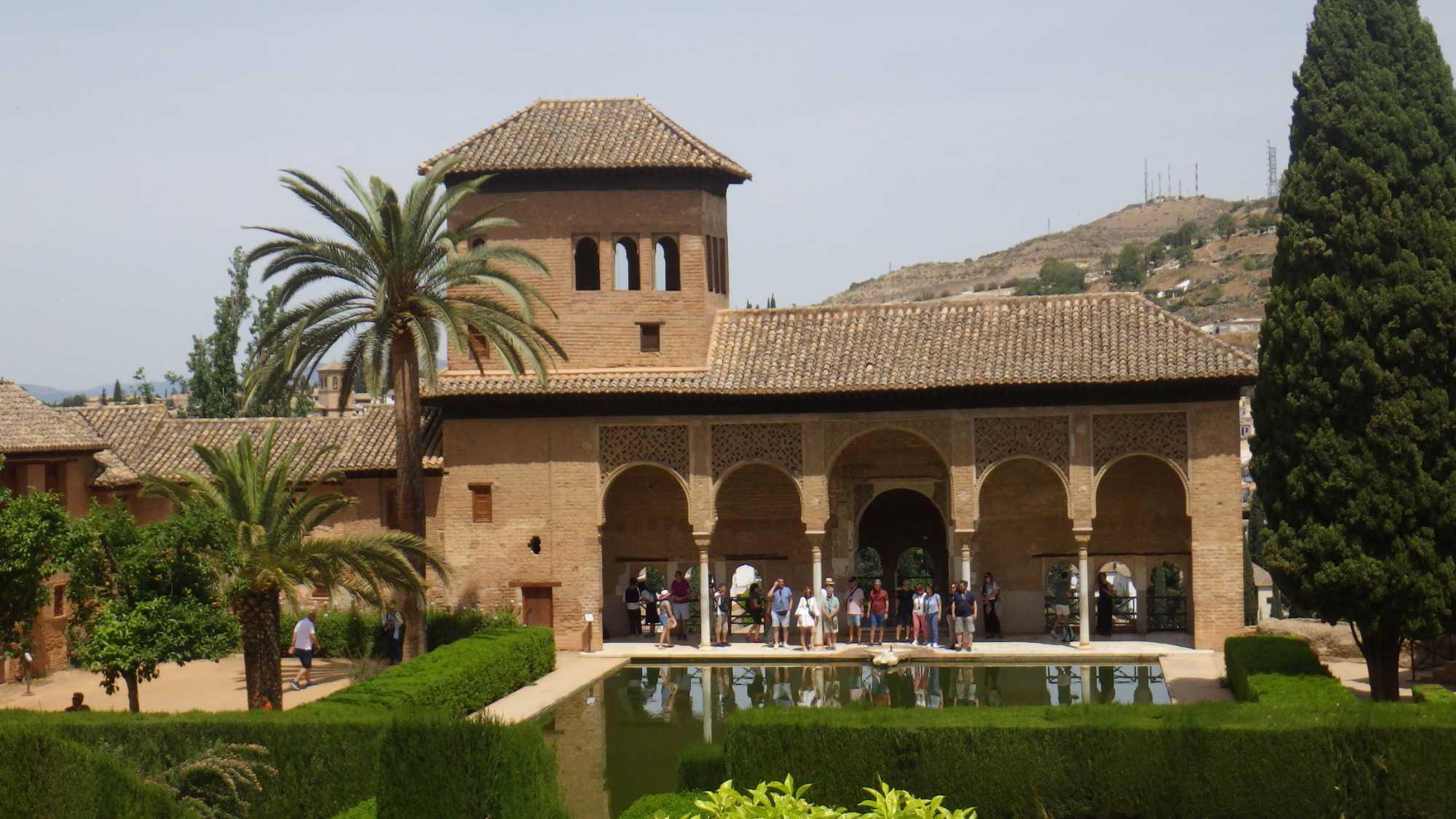 Parlons un peu de l’Alhambra. Elle constitue l'un des monuments majeurs de l'architecture islamique. Acropole médiévale la plus majestueuse du monde méditerranéen, elle est composée de quatre parties : l'Alcazaba, les palais nasrides, le Généralife et ses jardins, et le palais de Charles Quint. L’Alhambra est un ensemble fortifié situé sur la colline de la Sabika, qui domine la plaine et la ville de Grenade, et qui fait face au quartier populaire et pittoresque de l'Albaicin. On y aperçoit au loin les sommets enneigés de la Sierra Nevada. Le nom vient de l'arabe et signifie « le château rouge ». Chaque souverain qui y régnait, à l’époque, reprenait le palais de son prédécesseur et en édifiait de nouvelles parties, le modifiant à sa guise : on parle donc de palais Nasrides, au pluriel, pour cet ensemble.