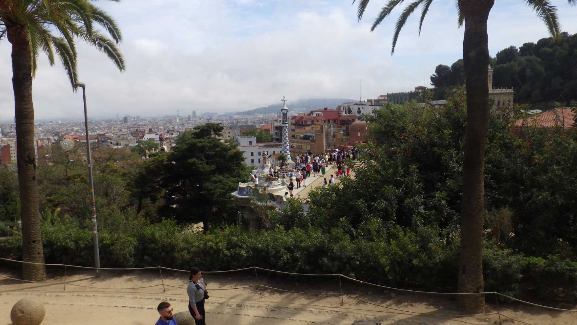 Après avoir déambulé à travers ces rues étroites, nous prendrons cette fois la direction du fameux parc Guëll. Moment attendu par plusieurs. Le parc Güell est l’une des réalisations de l’architecte catalan Antoni Gaudí, à Barcelone, qui figure sur la liste du patrimoine mondial de l’UNESCO. Il fut édifié entre 1900 et 1914. Les architectes José Antonio Martínez Lapeña et Elías Torres l’ont restauré de 1984 à 1993. Cette restauration a donné lieu à des polémiques notamment concernant l’habillage en céramique du banc de forme ondulée de la terrasse du Parc Güell.