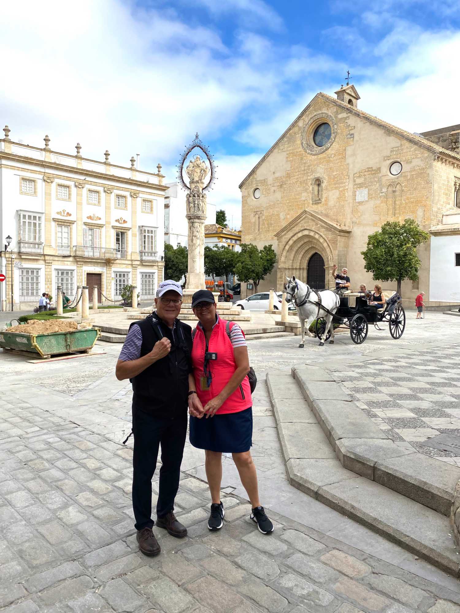 En chemin, nous avons longé d'immenses salines, produisant pas moins de 65 % du sel espagnol, exporté jusqu’au Canada et aux États-Unis pour déglacer les routes en hiver. Les champs agricoles défilent sous nos yeux : coton, tournesol, betterave à sucre et blé s’étendent à perte de vue, sans oublier les vignobles qui produisent le fameux vin de Jerez.