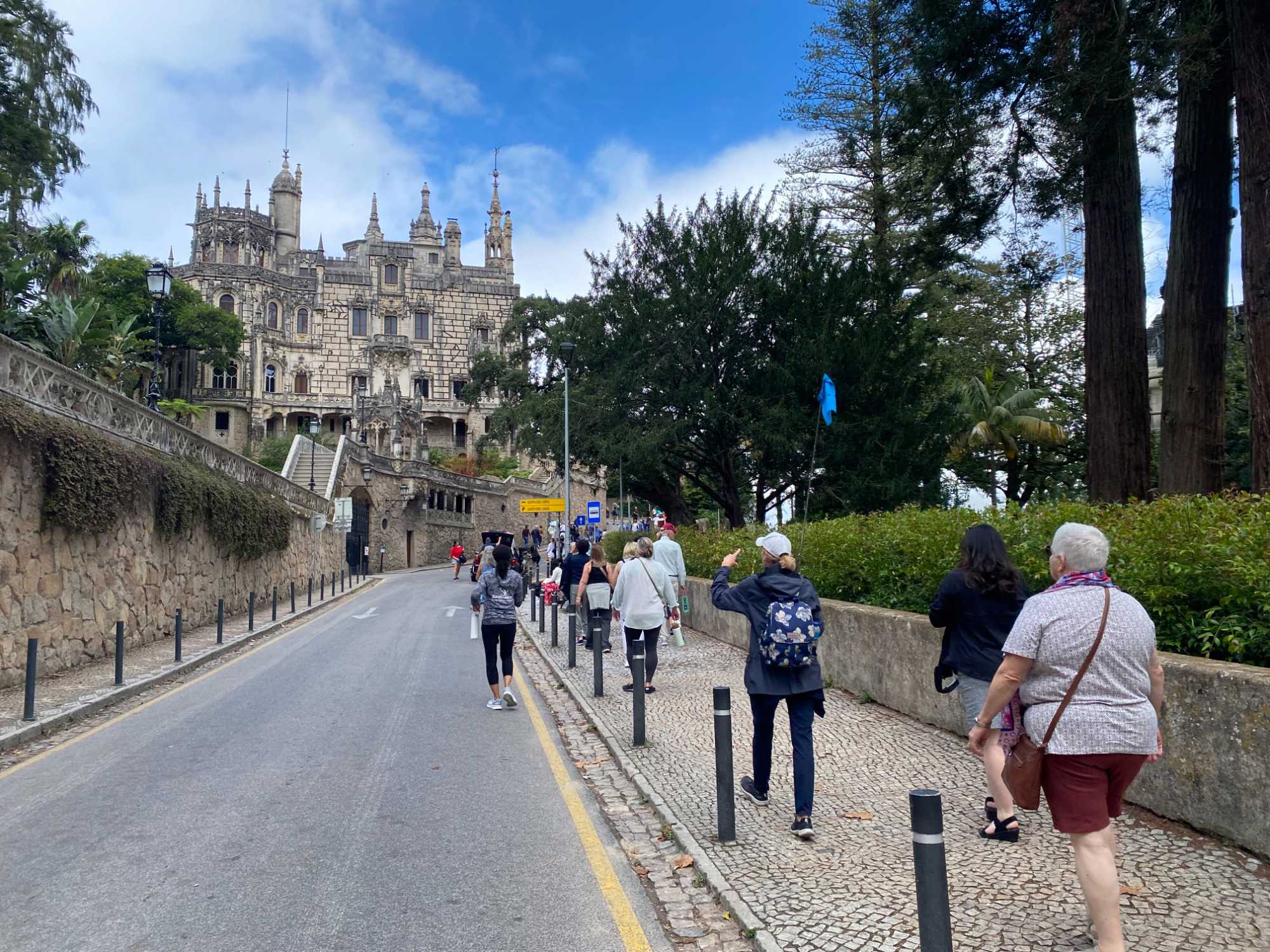 Après environ une heure de trajet, nous arrivons dans la charmante ville médiévale de Sintra, nichée à 529 mètres d'altitude. Son histoire remonte à l’époque maure, lorsqu’elle abritait une forteresse, mais elle a été reprise en 1147 par le roi Afonso I. Au 19e siècle, sous le règne du roi Ferdinand II, Sintra devient une résidence de villégiature pour la noblesse portugaise et la bourgeoisie, avec la construction de nombreux palais, dont le célèbre Palais de Pena. Sintra est également réputée pour son microclimat unique, qui favorise une végétation luxuriante, donnant à la région une atmosphère presque mystique. On profite d’un moment pour explorer le centre-ville, certains sautent sur l’occasion pour faire du shopping tandis que d’autres se régalent des célèbres travesseiros de Sintra, ces délicieuses pâtisseries feuilletées fourrées à la crème d'amande et de jaune d'œuf, typiques de la région.