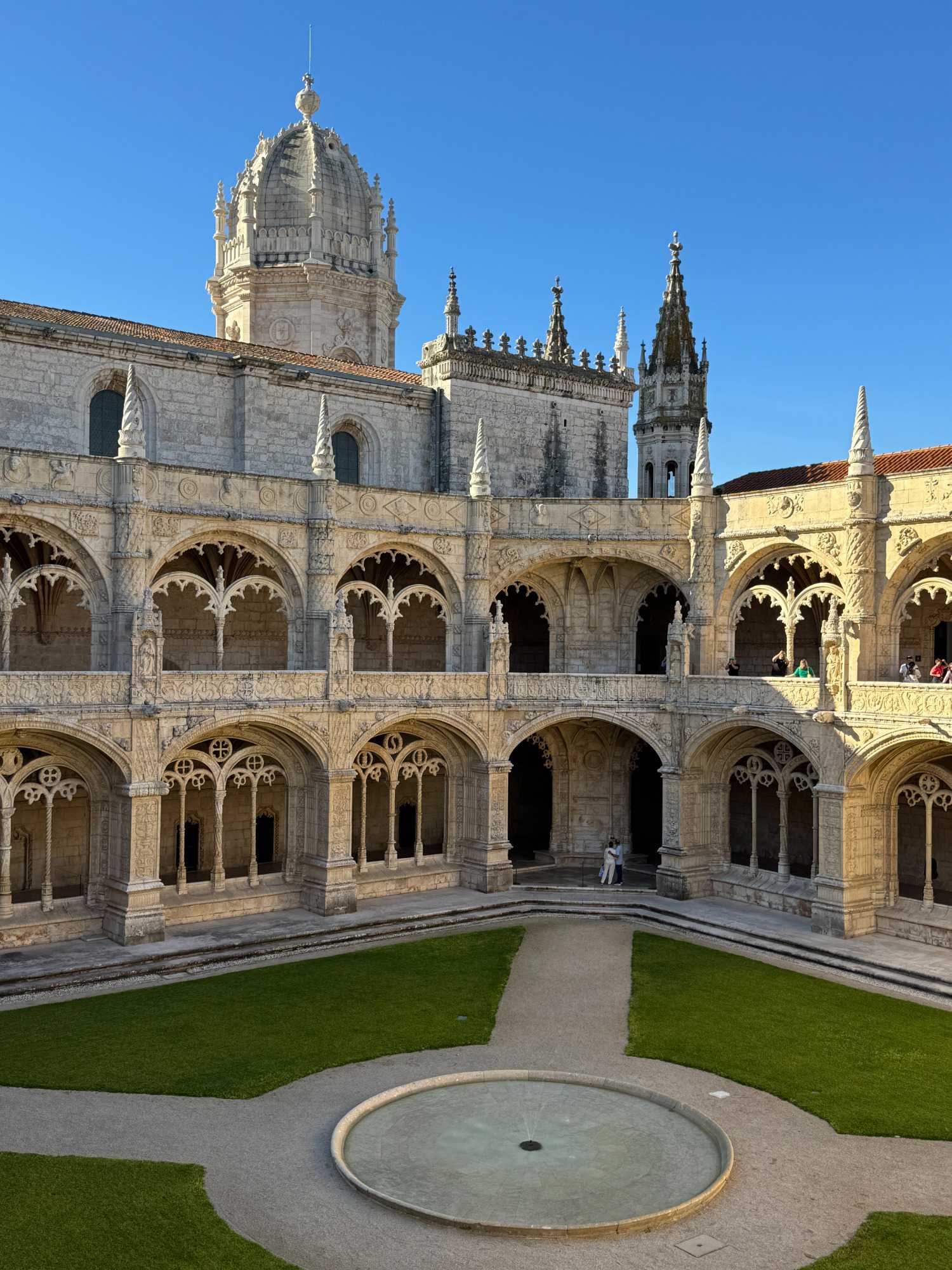 Marco nous conduit ensuite vers le quartier de Belém, dont le nom est dérivé de "Bethléem". Ce quartier historique abrite certains des monuments les plus emblématiques du Portugal. Nous commençons par la visite du Monastère des Hiéronymites, construit entre 1500 et 1573, qui a miraculeusement survécu au tremblement de terre de 1755. Le cloître du Monastère des Hiéronymites, inscrit au patrimoine mondial de l'UNESCO, est un chef-d'œuvre de l'architecture manuéline, un style unique au Portugal. Ses arcades ornées de motifs marins et religieux rappellent l'âge des grandes découvertes portugaises, tandis que ses colonnes torsadées et ses voûtes nervurées témoignent de l'habileté des artisans de l'époque. Au centre, un jardin paisible offre un espace de méditation aux moines, symbolisant l'harmonie entre la spiritualité et la nature. Les voûtes, avec leurs détails sculptés, ajoutent une impression de légèreté et de grandeur à cet ensemble majestueux. Ce cloître représente la puissance spirituelle et impériale du Portugal durant la Renaissance, commandé par le roi Manuel Ier pour célébrer les voyages de Vasco de Gama. Il incarne à la fois l'histoire, l'art et le recueillement.
