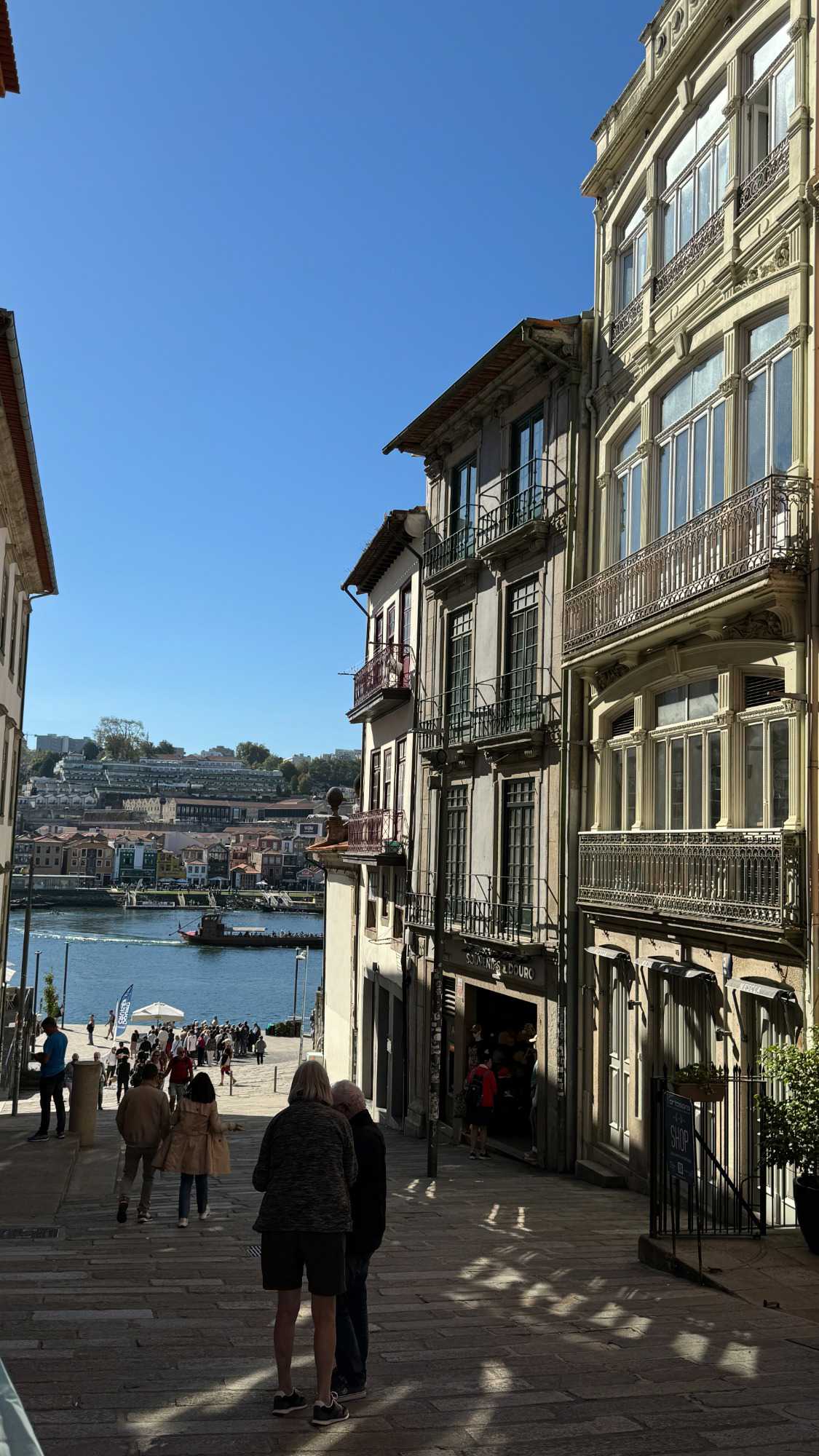 Nous avons poursuivi notre exploration dans le quartier historique de la Ribeira, avec ses ruelles étroites et pavées qui serpentent jusqu’aux rives du Douro. Ce quartier, classé au patrimoine mondial de l’UNESCO, est rempli de vie avec ses cafés, ses boutiques, et ses maisons aux façades recouvertes de faïences colorées. En route, nous avons également admiré la magnifique Église dos Clérigos avec sa tour du clocher de 76 mètres ainsi que la cathédrale de Porto, deux exemples impressionnants de l’architecture religieuse portugaise.