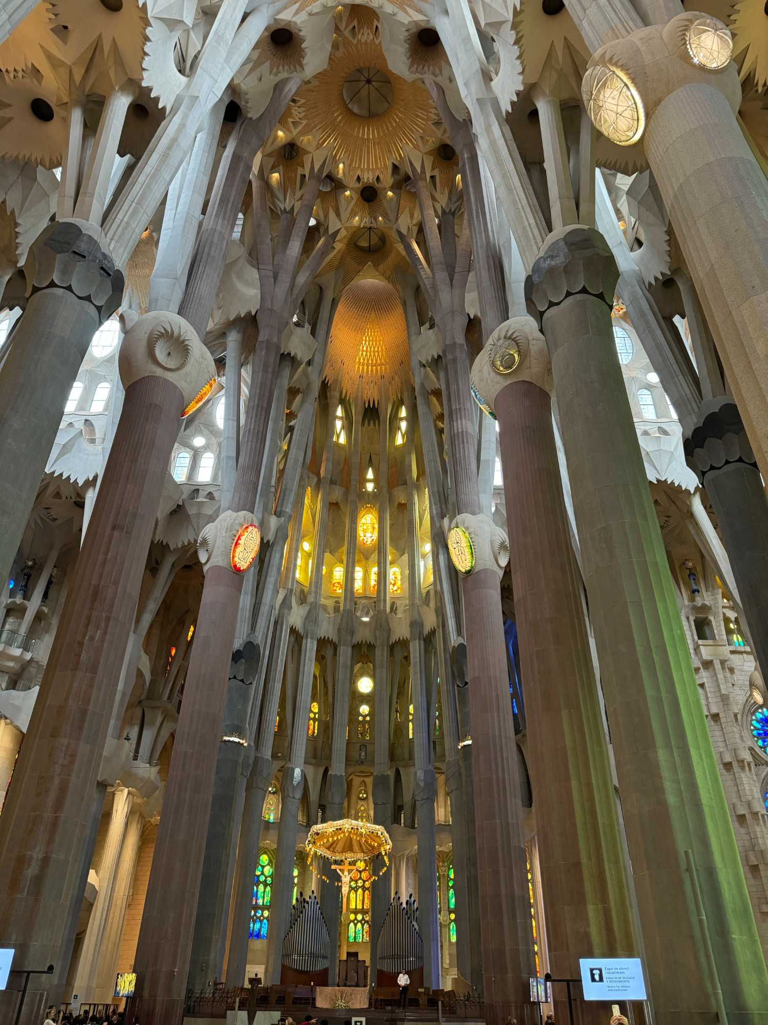 La Sagrada Familia est une fusion unique de formes géométriques, de symbolismes religieux et de l’inspiration tirée de la nature, chère à Gaudí. À l’intérieur, la lumière traverse les vitraux colorés, inondant l’espace de couleurs vibrantes, créant une atmosphère presque mystique. Chaque détail semble pensé pour inviter à la contemplation et à l'émerveillement. Nous restons bouche bée devant la grandeur monumentale de cette œuvre qui semble défier le temps. Nous admirons la beauté majestueuse de cette église, puis nous visitons son musée, rempli d’informations fascinantes sur l’histoire et la vision de Gaudí. Chaque salle nous offre un aperçu des détails architecturaux complexes, des maquettes originales et des inspirations naturelles qui ont influencé cette œuvre magistrale. C’est une immersion complète dans l’univers de cet architecte de génie!