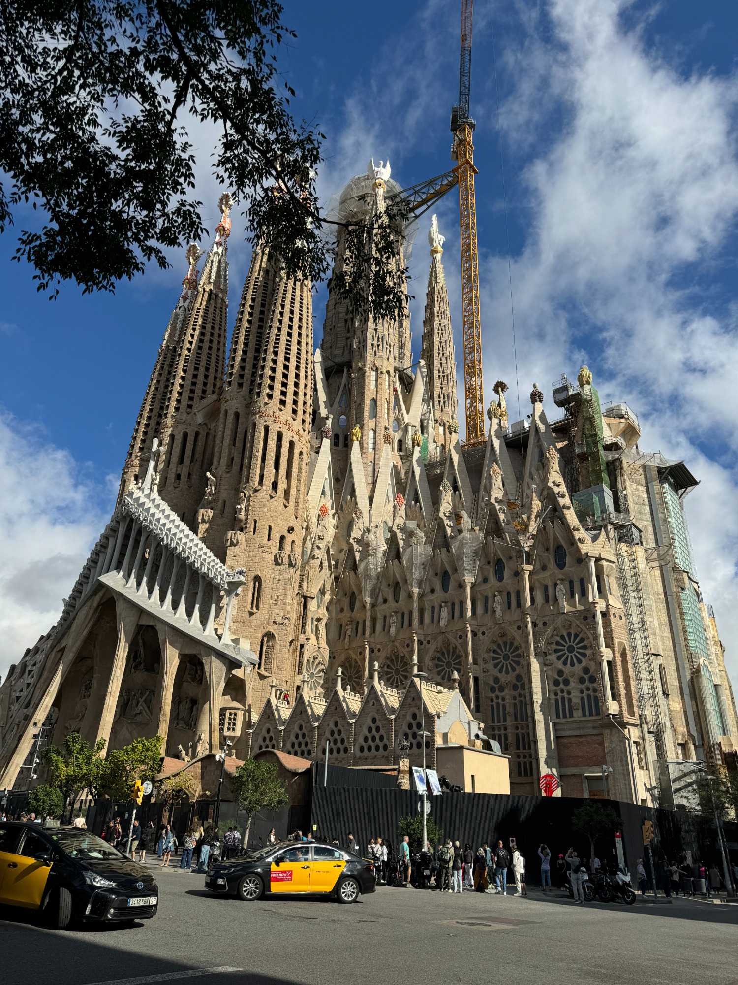 Au port, nous retrouvons facilement notre guide Miquel et notre conducteur francophone Cédric, qui nous accompagnent pour une visite incontournable : la Sagrada Familia. Cette basilique, conçue par l’architecte Antoni Gaudí, est un chef-d'œuvre de l'architecture moderniste et un symbole de Barcelone. La construction a débuté en 1882, et bien que toujours inachevée, elle est déjà classée au patrimoine mondial de l'UNESCO. La construction officielle devrait se terminer d’ici quelques années. Une fois achevée, la basilique sera la plus haute église du monde, avec une tour centrale de 172,5 mètres de hauteur.